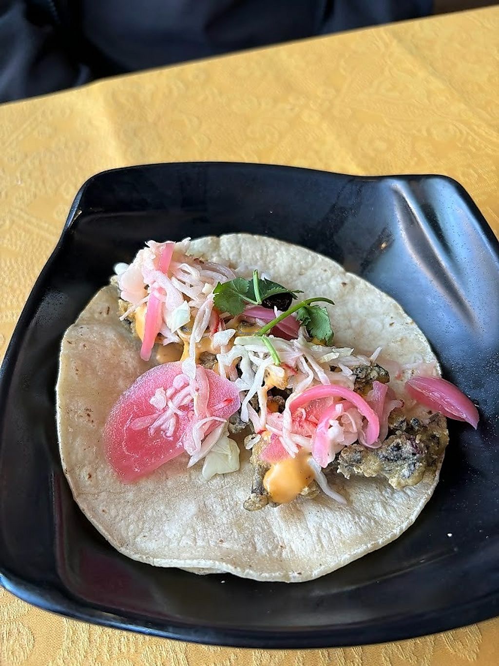 They have plenty of vegan options. The food was phenomenal..I tried the vegan calamari taco (5/5). It's fried hibiscus. Loved it so had to try it again (so had 2 of them). (The service was great too, everyone seemed nice)