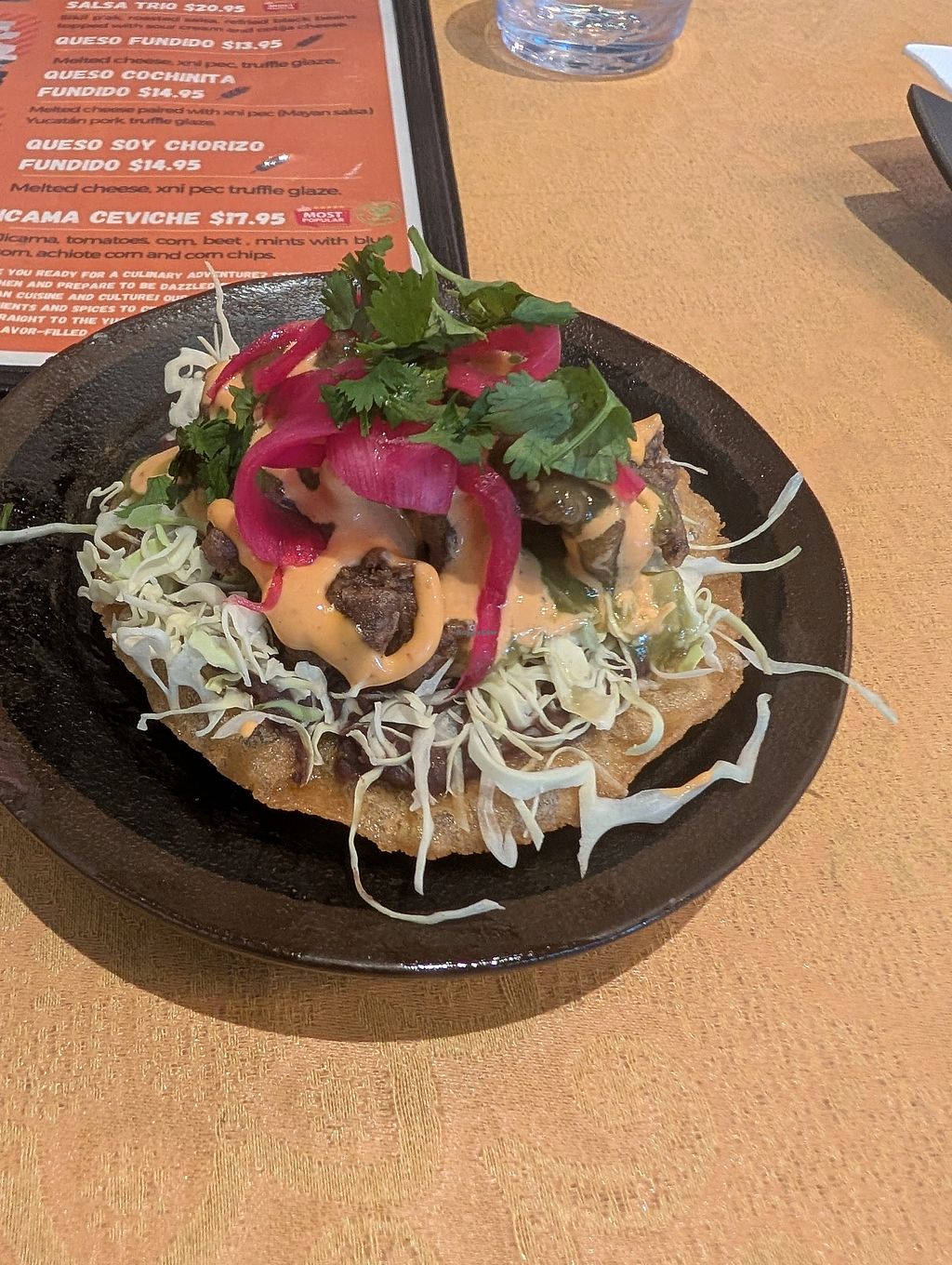 I went here for an after work meet up with friends, and we really like the location. Cute little strip with pretty lights. The owner of this place, Katie, and her chef are super sweet and hardworking. They have a separate section for vegan food and really tries to make the best vegan alternatives so that we enjoy Mayan cuisine. I recommend the vegan kibis and bao. I really like the sikil p’ak as well (the pumpkin makes a healthier creamy cheesy dip).