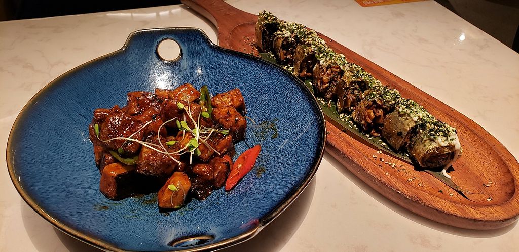 Pretty good, but not amazing. I liked the cumin skewers and the tofu-and-eel dish. They weren't mind-blowing, but they were enjoyable. I did not like the nori-wrapped mushrooms or the sausage-and-potato roll (or was it taro? chinese yam? some starch). The first was flavorless except for the nori taste, and the second was unpleasant, the fake sausage not being great and the starch just being mush. There was no correlation between what I liked and what they listed on their "top ten" page.