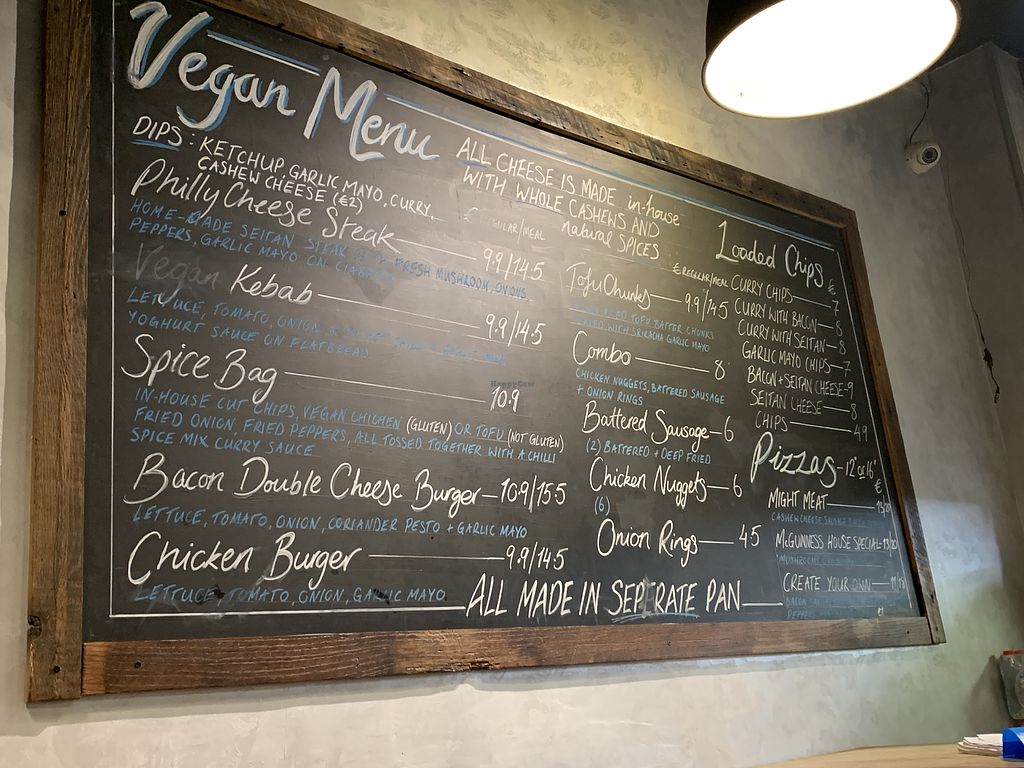 Large vegan menu, a must for any vegan in Dublin! You need to the curry cheese chips.