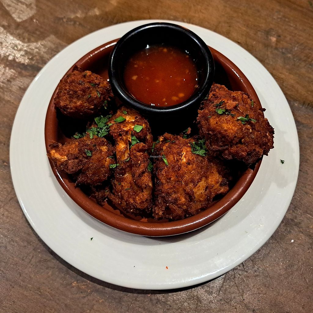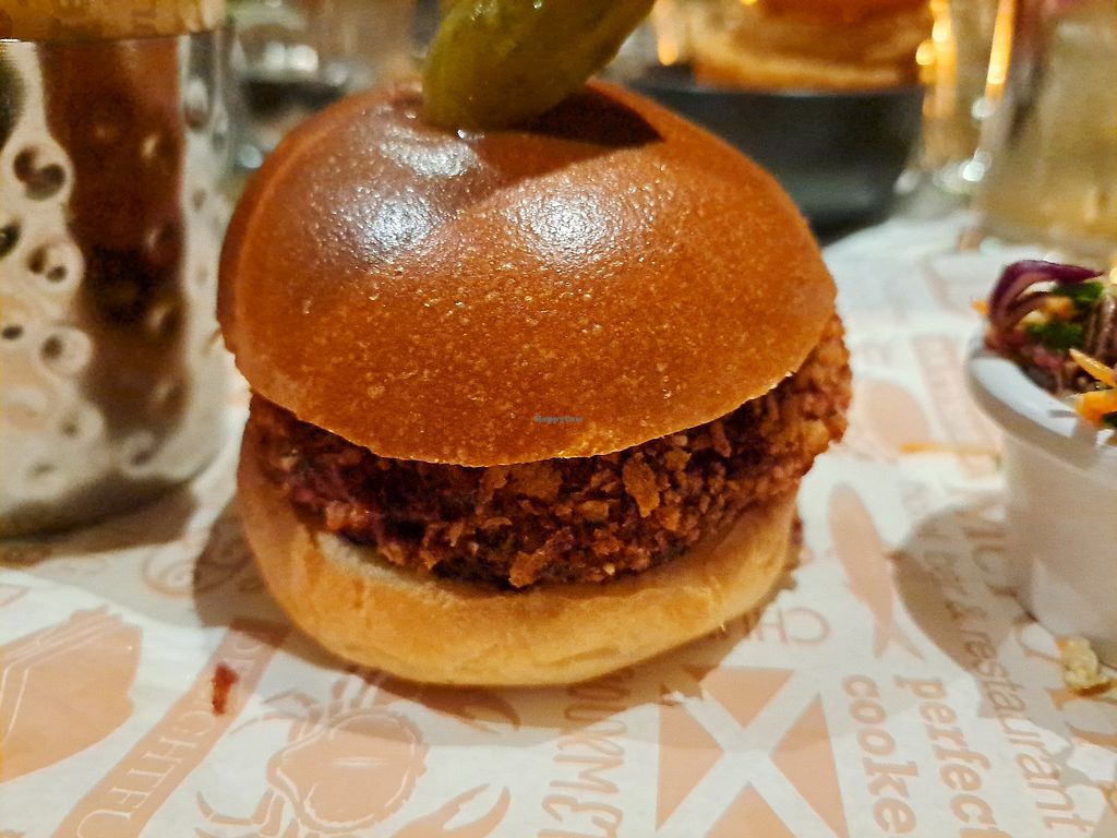 Read moreI got the beetroot burger which was actually amazing, full of flavour,really fruity beetroot with a hint of mint and other herbs/spices. I would absolutely get it again. The buns as super fresh and delicious, and the chips were amazing, proper chippy chips. Got a side of onion rings too which were great. We got cauliflower bites to start which were AMAZING and we got sweet chilli sauce instead of the garlic mayo to make them vegan. They were great, really enjoyable. No vegan desserts which was a shame.