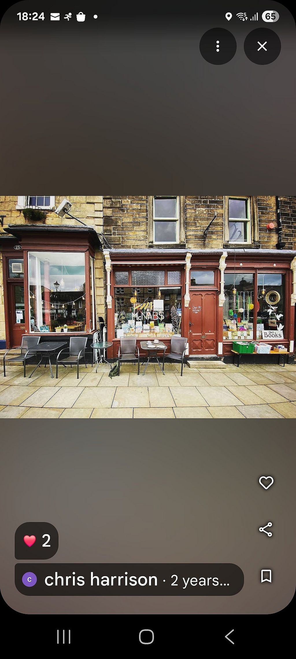 Great little cafe and my lunch was served in the book shop…dog friendly and fab vegan options as I’m trying to become vegan and my vegan, just moved into the area, daughter visiting soon has been vegan for couple years
