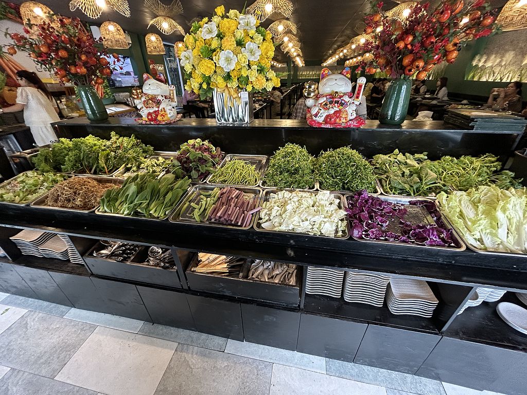 Had a super experience at this veggie hotpot restaurant. Casual but pleasant vibe, table has hotpot built in and you get a choice of many broths to put in. Then serve yourself from the plethora of choice of veggies, proteins and noodles. All washed down with ample amounts of iced tea. Loads of side dishes and sauces, all lovely. Staff were helpful and lots of locals eating there - a good sign!