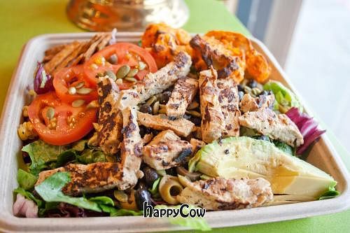 Taco Salad with soy chicken and roasted buffalo cauliflower