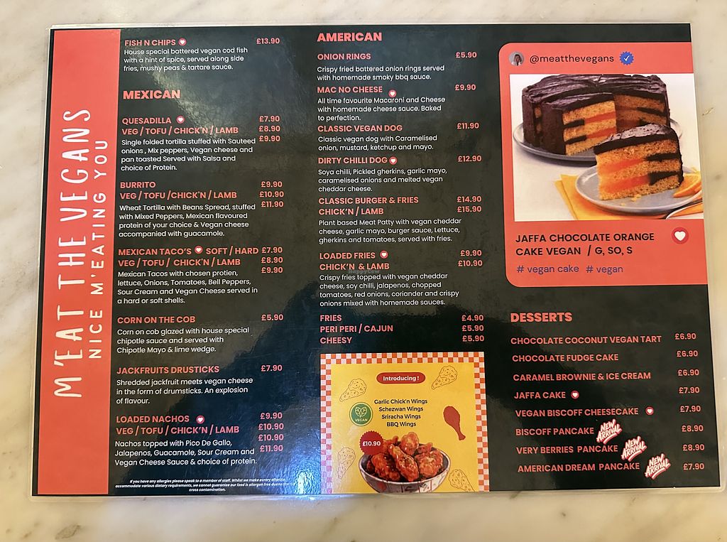 We were so happy to find out that M'eat the vegans had opened near us. We visited yesterday for the first time and were not disappointed. There is so much choice, it took us ages to decide what to try. This place would be brilliant for a group of friends with different tastes as there is something for everyone.
