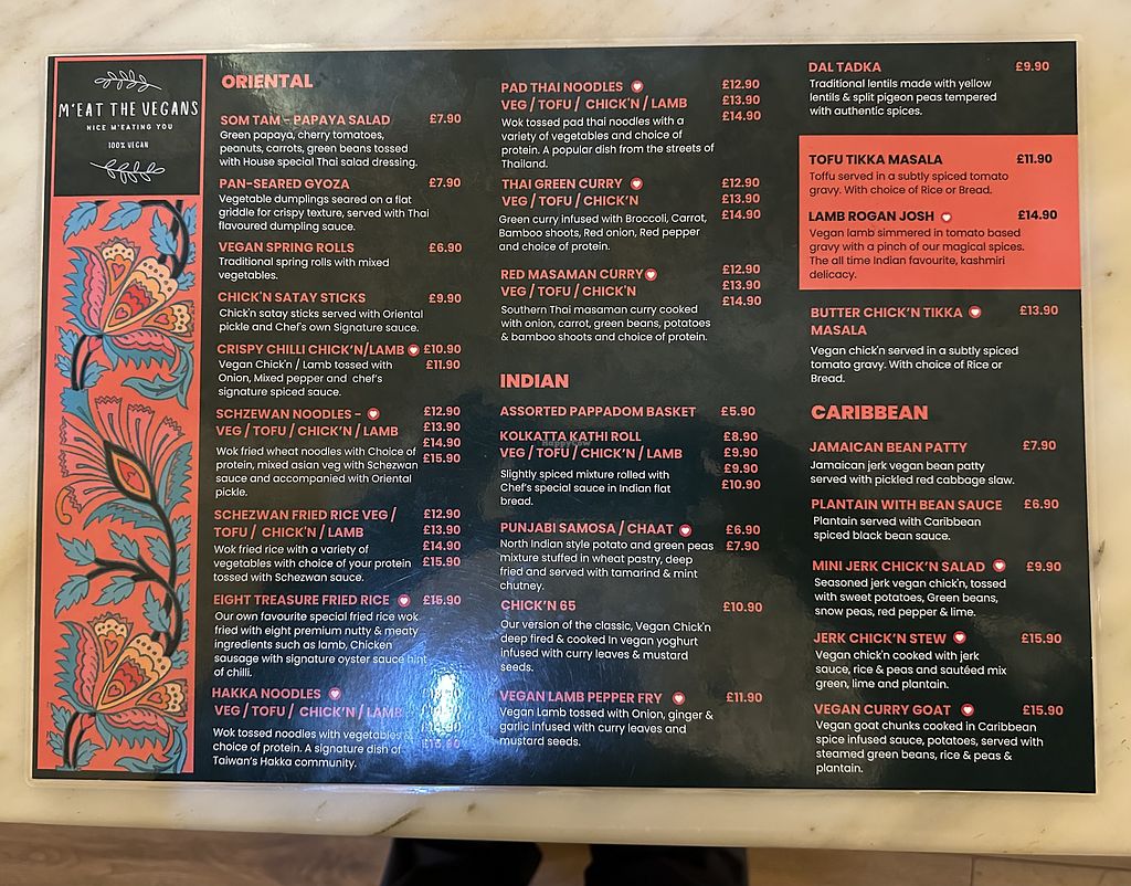 We have been ordering from m’eat the vegans for ages, so we’re delighted when this new restaurant opened near us . We ate there last night , and had a great time , as always the food was delicious, we had the wings , 8 treasure rice and butter ( not ) chicken . And a papaya salad which was so tasty . Cocktails and wine also great . And staff were friendly / service was quick despite it being busy . We will be going again soon . Highly recommend