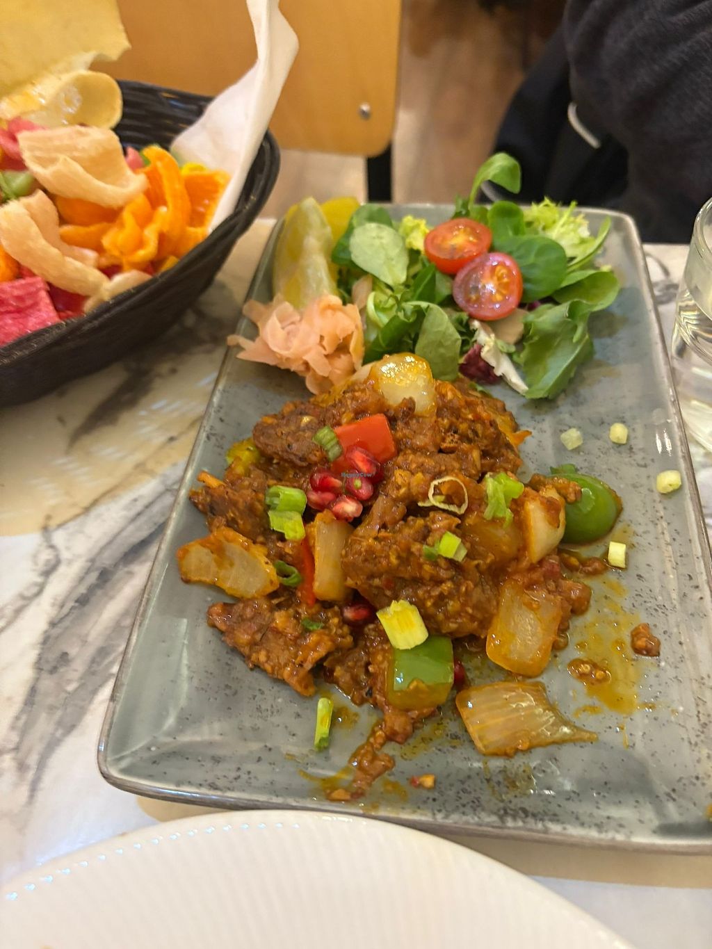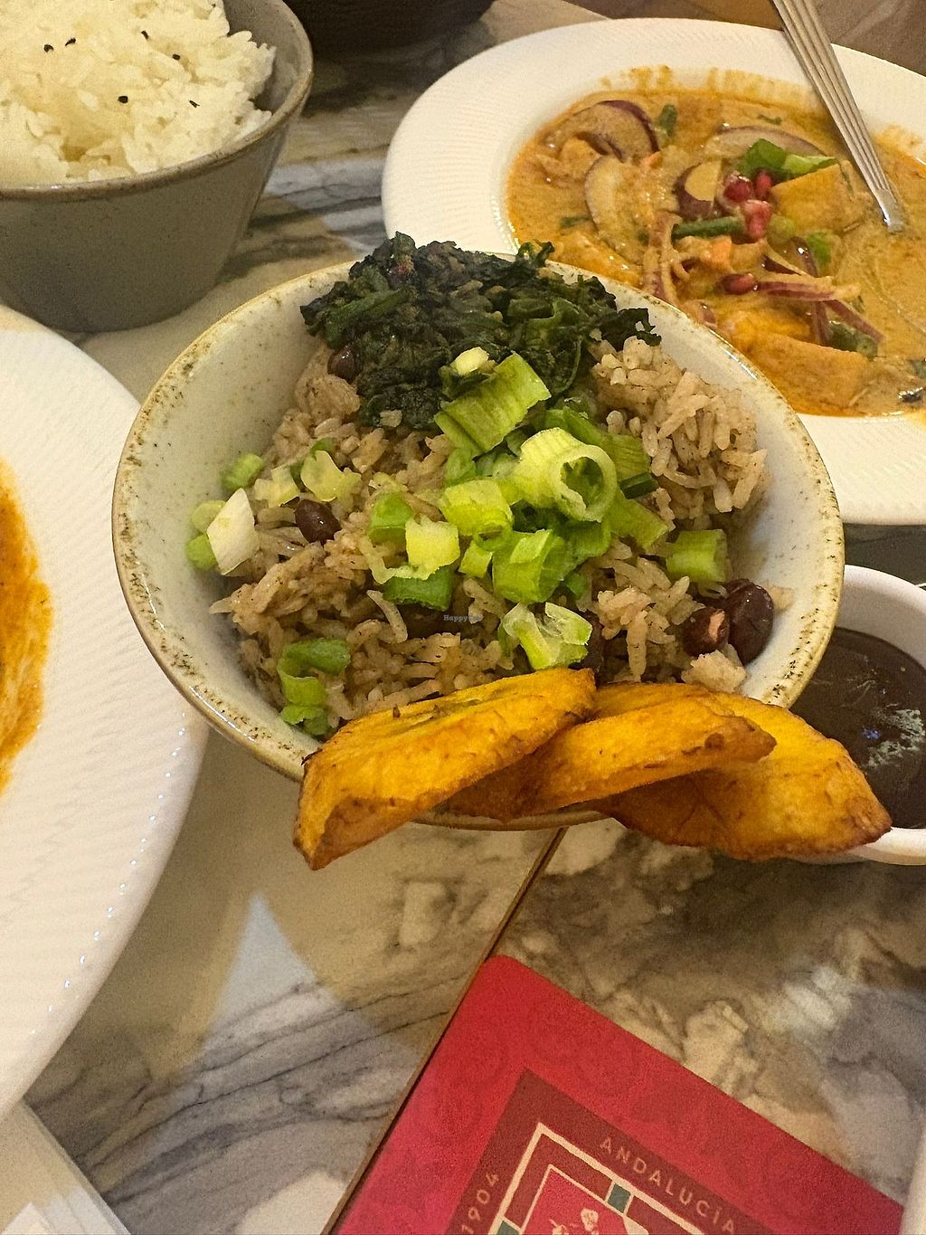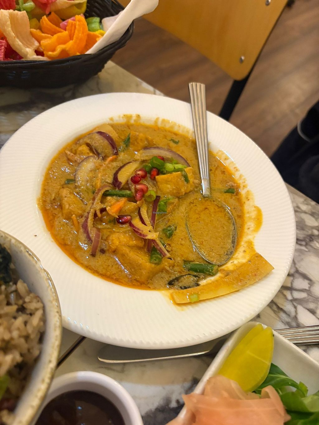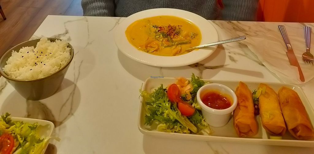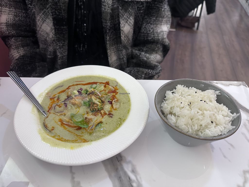 Read moreNice restaurant and super friendly service (although a little slower than we expected, and had to ask for a few things e.g. plates, spoons, etc! but this is normal when they are just starting out). Menu is extensive, lots of options! We went for a mix and probably would have stuck to one cuisine on reflection - pictured are tikka curry, jerk curry, massaman curry (all came with good portion of rice) + we got some sides of spring rolls and crispy chilli 'lamb'. Food was all excellent - they had a couple of items not available (bischoff cheesecake) and don't serve any hot drinks which we were surprised about - but overall a really positive experience and with a few minor refinements, will hopefully be a standout place. Really great to see a fully vegan place open so will definitely be back.