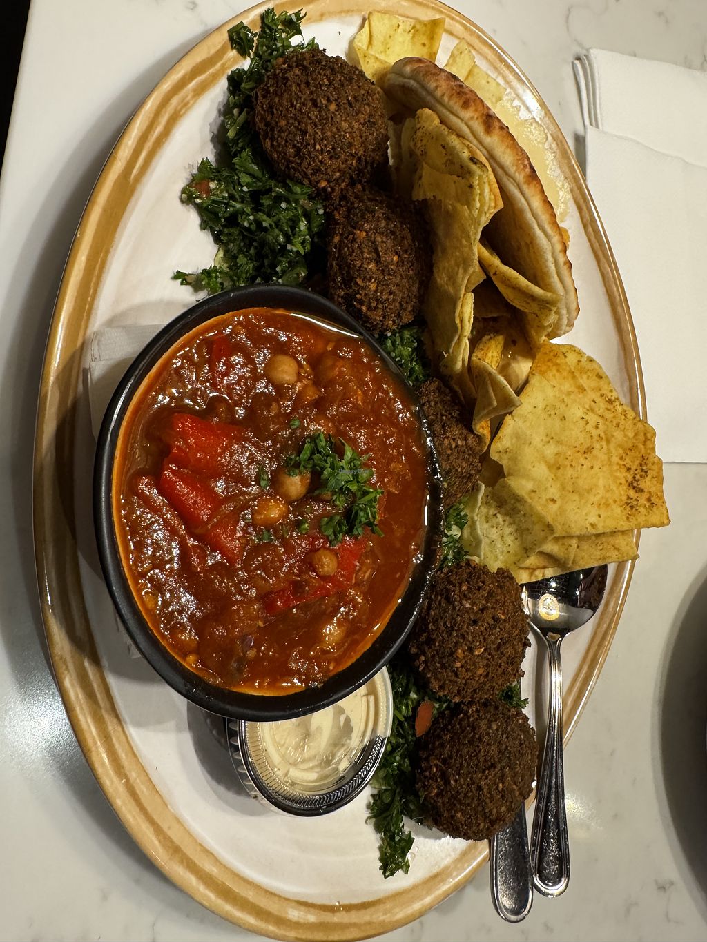 Falafel plate with chips and pita