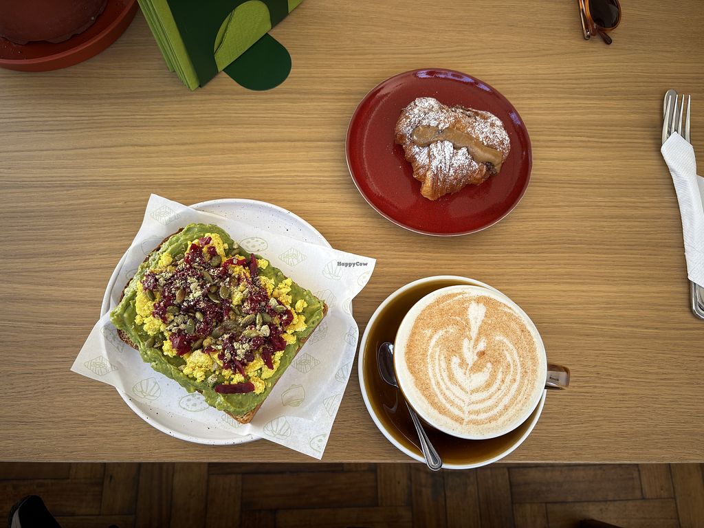 Tostada, medialuna manjar y chai late