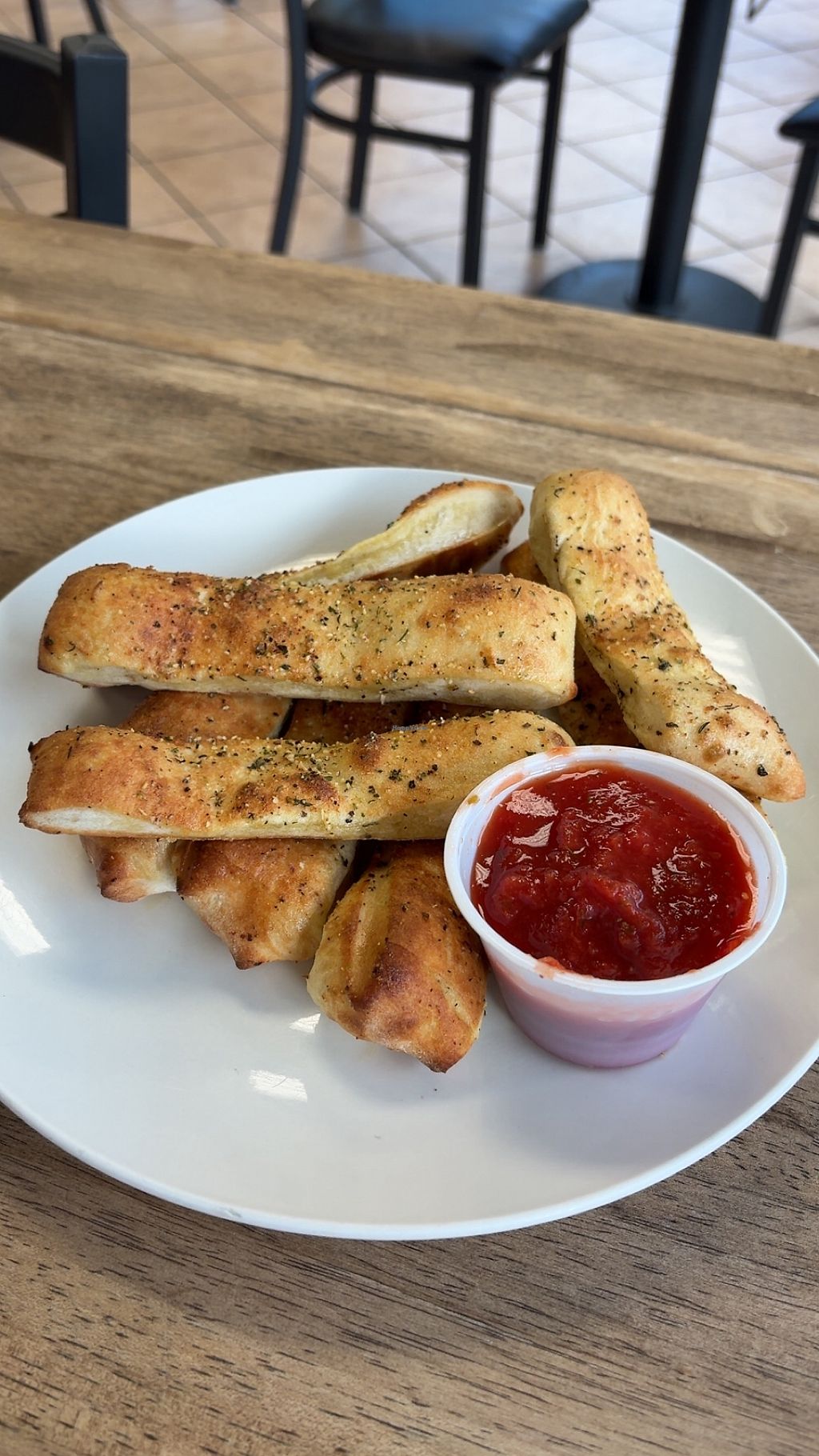 Great vegan pizza and more. I had a pizza topped with jerk oyster mushrooms, lion’s mane mushrooms, and fresh spinach. I also ordered a side of breadsticks with vegan ranch—everything was delicious. 🍕🌱