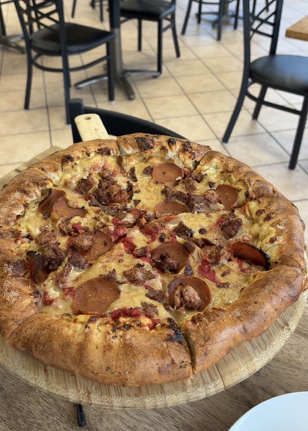 Based on pizza alone 5 stars, but taking into account lack of drink options, sides, and decor, I give it 4 stars. Location is a bit random in middle of nowhere also (we’re lot local tho so maybe this is normal)