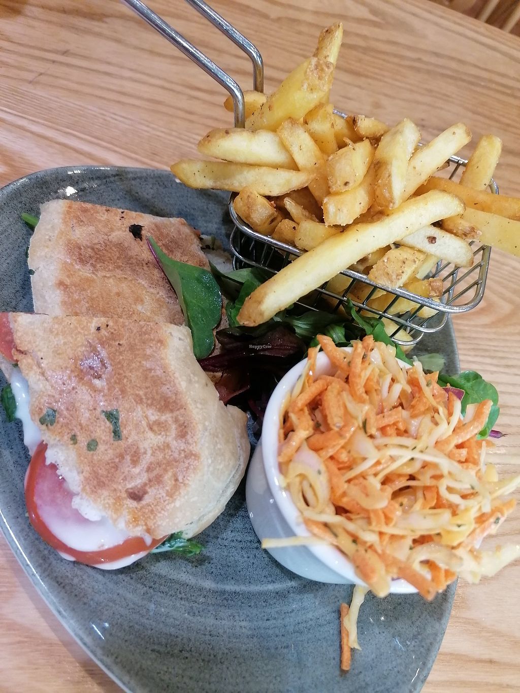 I visited here for the first time today, I loved the decor and there was plenty choice on the menu. Decided to go for a toastie with chips. Went for the 'Feta, spinach and tomato' toastie that was served on a ciabatta and came with a side salad and coleslaw. The cheese was very nice!