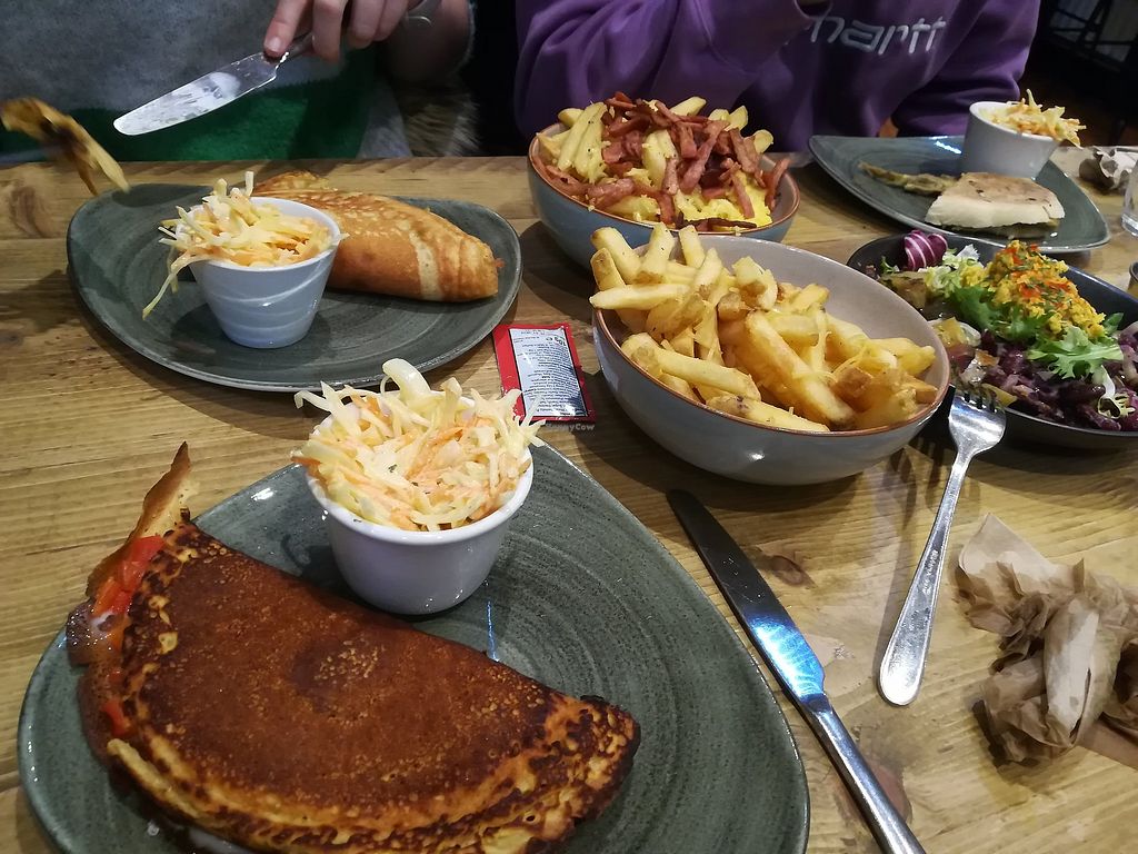 I had the chicken and pesto toastie with loaded cheese and bacon fries. The toastie was really nice, very filling and came with a side of coleslaw which I’m always a big fan of. The fries were delicious also, the bacon was the best vegan bacon I’ve ever had. The service was amazing. Only thing I would say is it is quite small with not so many tables and being the only fully vegan place in Southport we could find I’d probably book as it does fill up fast especially on a weekend/bank holiday. All in all I would definitely visit again.