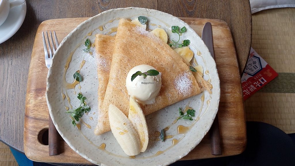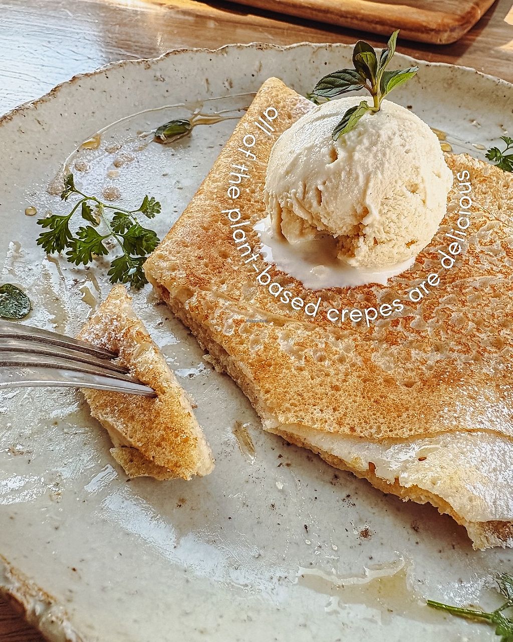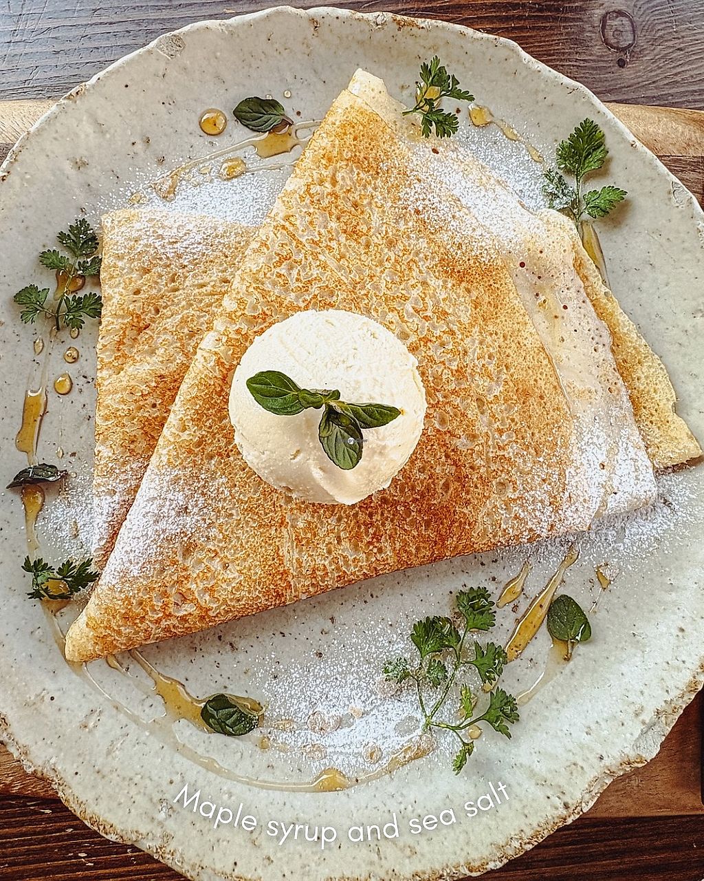 Crepe with vegan butter, vegan ice, salt and something like maple syru…