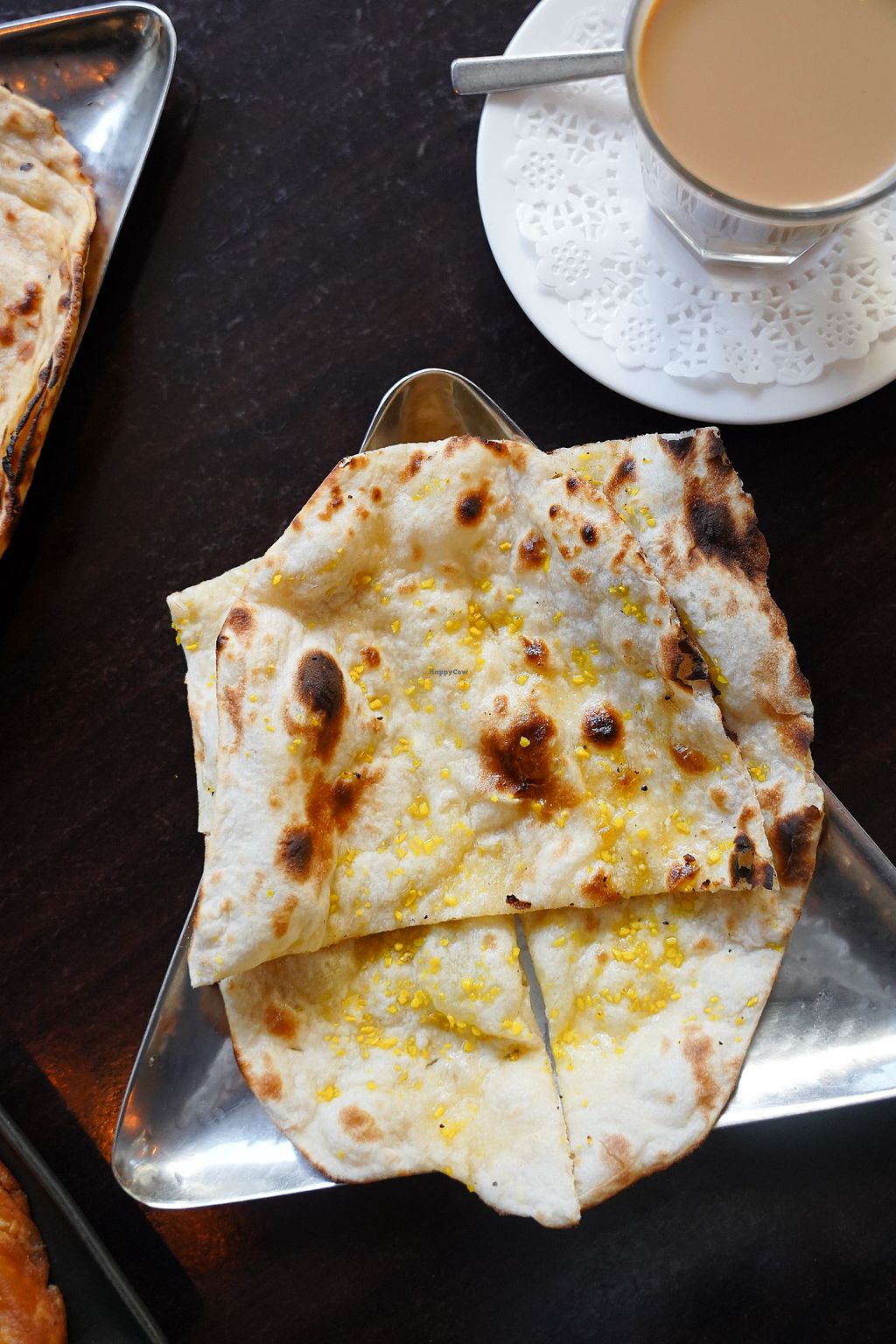 Serves meat, vegan options available. Restaurant offering veganizable dishes (on request) like plain naan, chana masala (chickpea curry), aloo palak (potato and spinach curry), mixed vegetable curry, dal (lentil curry), samosas (vegetable filling), onion bhaji, and more. Open Mon-Fri 11:00am-2:30pm, Mon-Sat 5:00pm-9:30pm, Sun 11:00am-2:30pm.