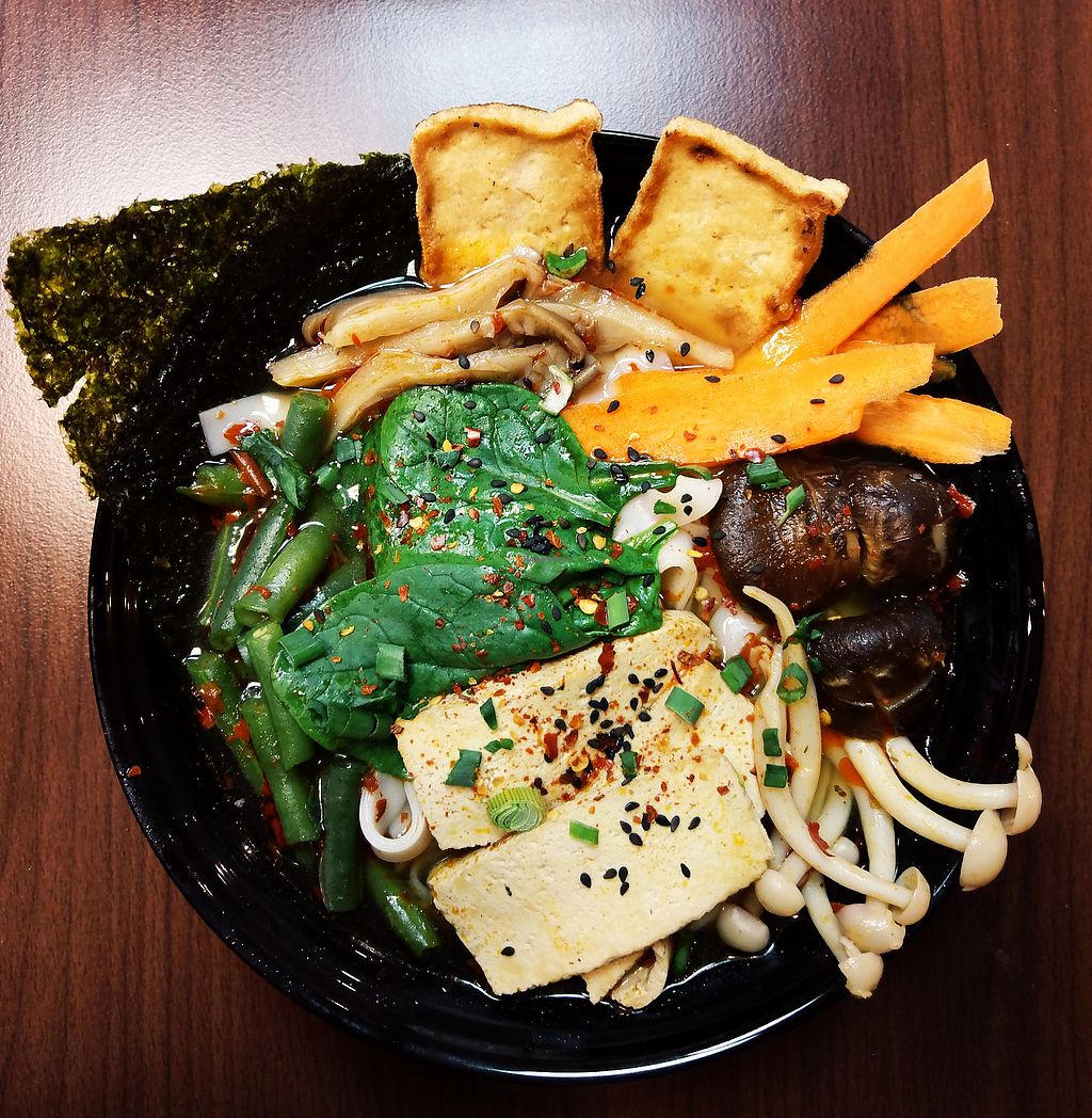 Serves meat, vegan options available. Chinese restaurant with vegan menu, featuring dumplings baozi, and noodles. Also serving vegan soups and salads. Menu includes won ton dumplings with vegan soup or peanut butter sauce. Dumpling dough is egg-free. Gluten-free dumplings also available. Confirmed closed, May 2019.