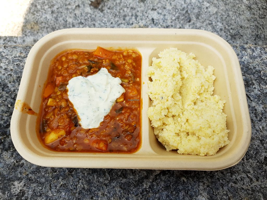 A good option for a cheap complete vegan lunch meal. Mostly mediocre food, but good value for the price. No or only a few customization options (doesn't affect me, may affect others).