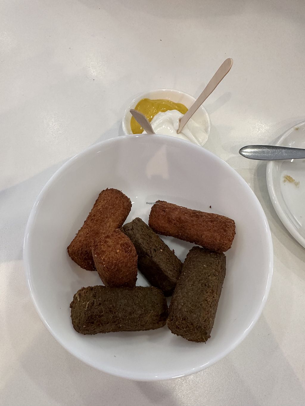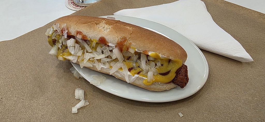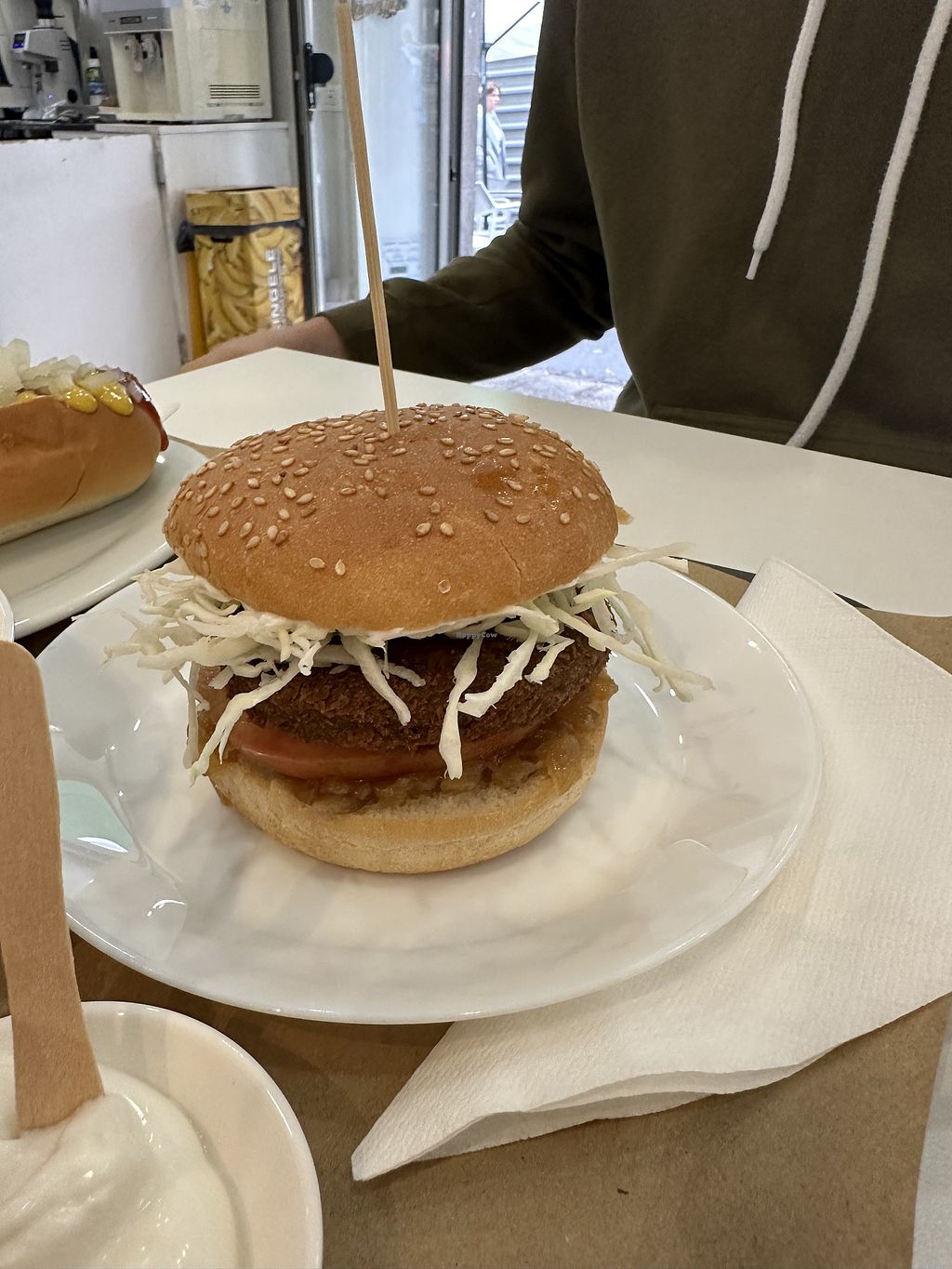 The Beet Hot Dog was excellent (fluffy bun, great flavors, good size). The Legumes Burger with caramelized onions on top was perfect (fluffy bun, the white cabbage was a perfect match, great patty). The fries were too soggy for us. The croquettes were crispy on the outside and soft on the inside (very good overall). The sweet pastry was excellent in terms of taste and consistency.