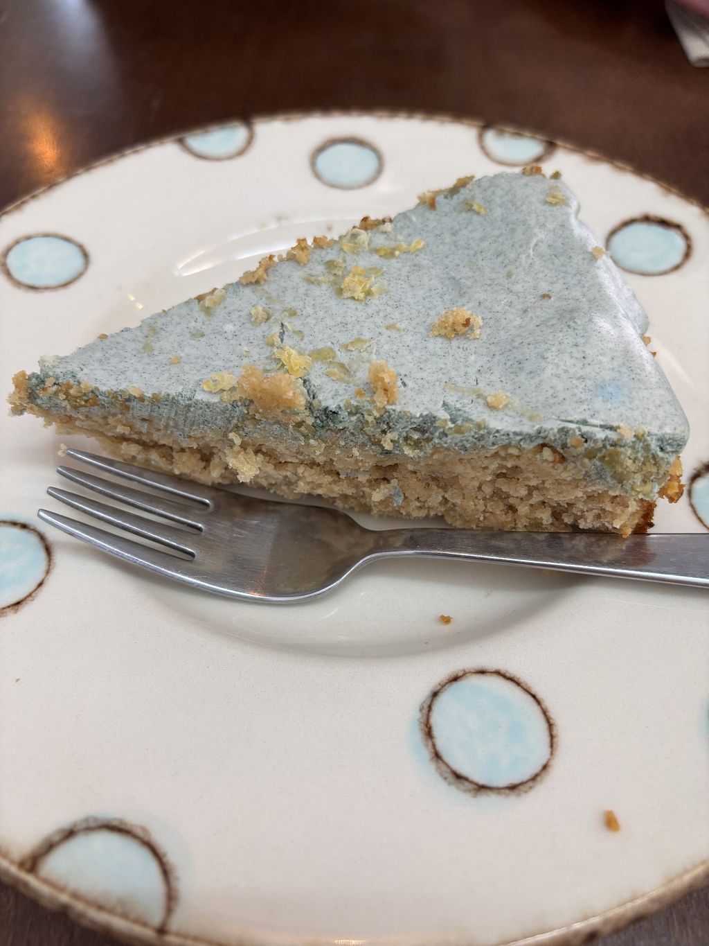 This cake was tasty but very crumbly and dry. Spirulina icing and citr…