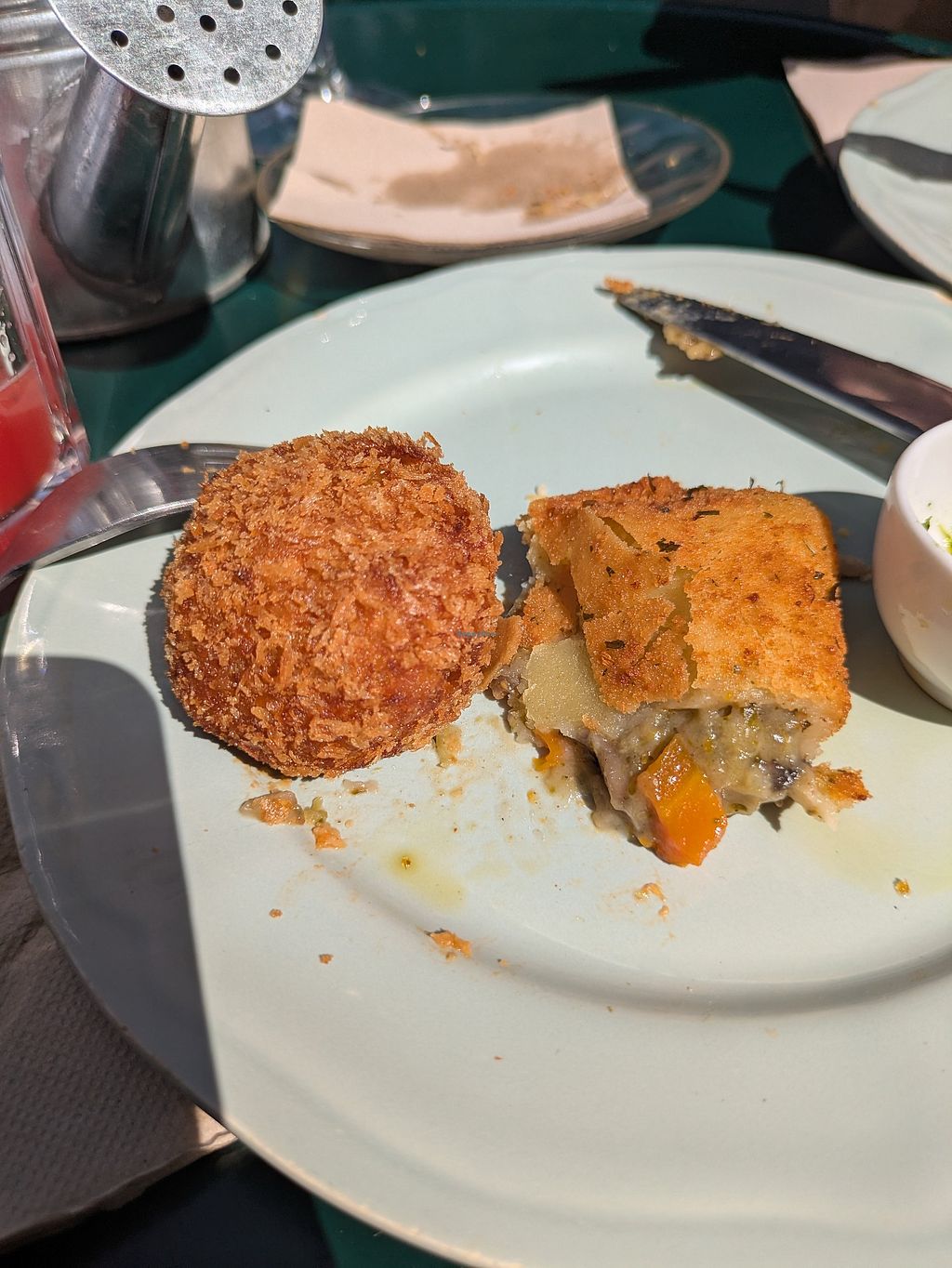 Croquete de alheira e seitan e rissol de vegetais