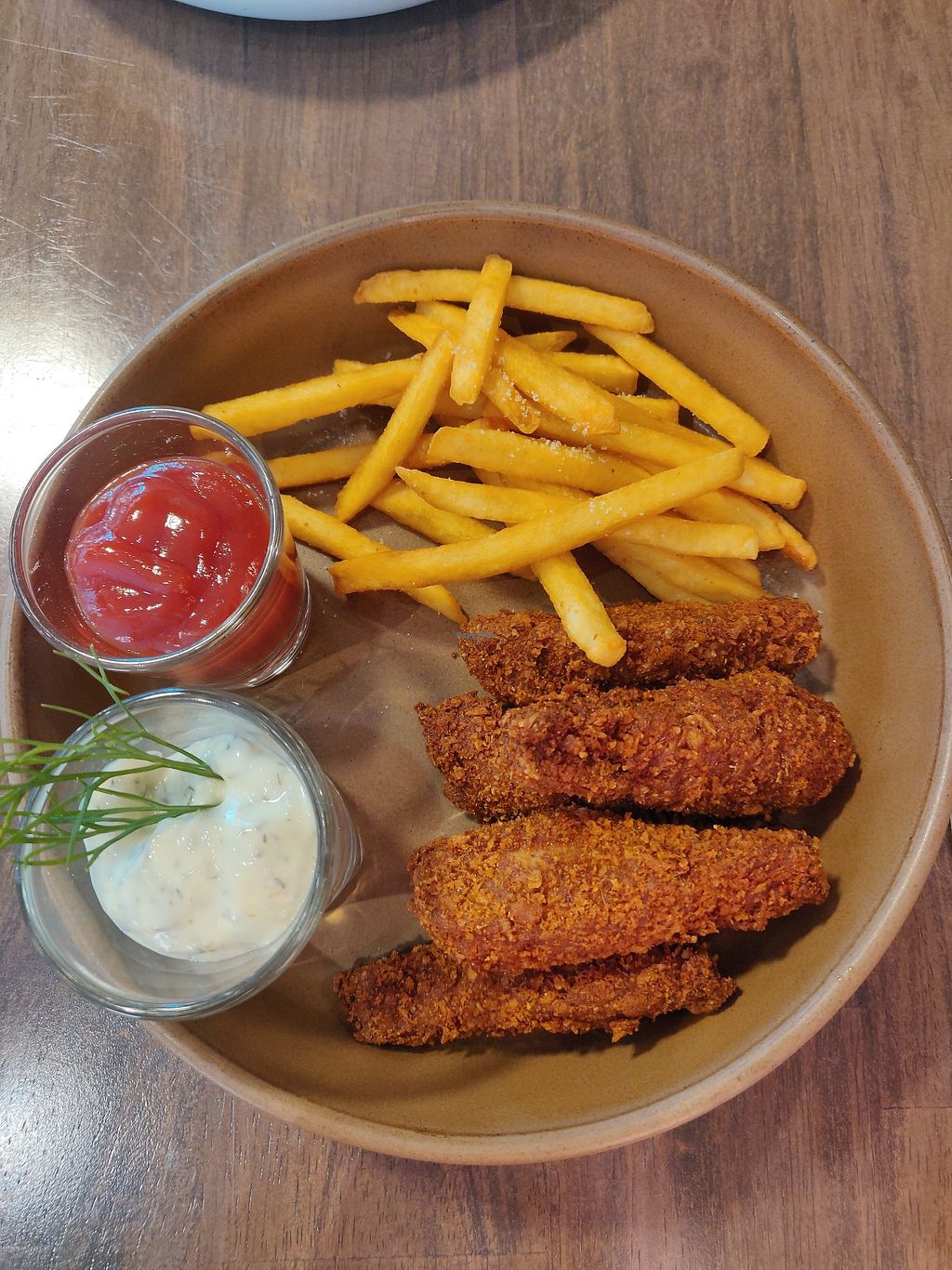 Cute Restaurant with friendly people and yummy food. We tried the "chicken" wings with fries, as well as the donuts. Everything was very good! Would come back.