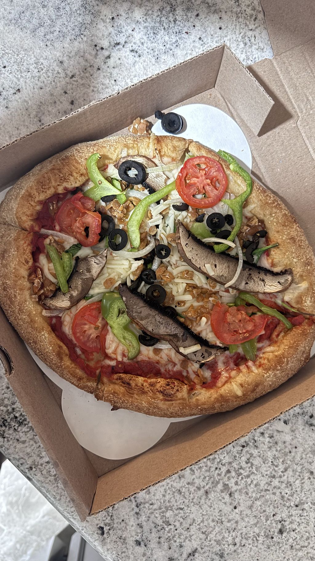 Love that they can make their vegan crust using the regular pizza dough. Nothing wrong with gluten-free but I like my crust a little bit thicker I always try and find a mellow mushroom when I’ve had a date and traveling.