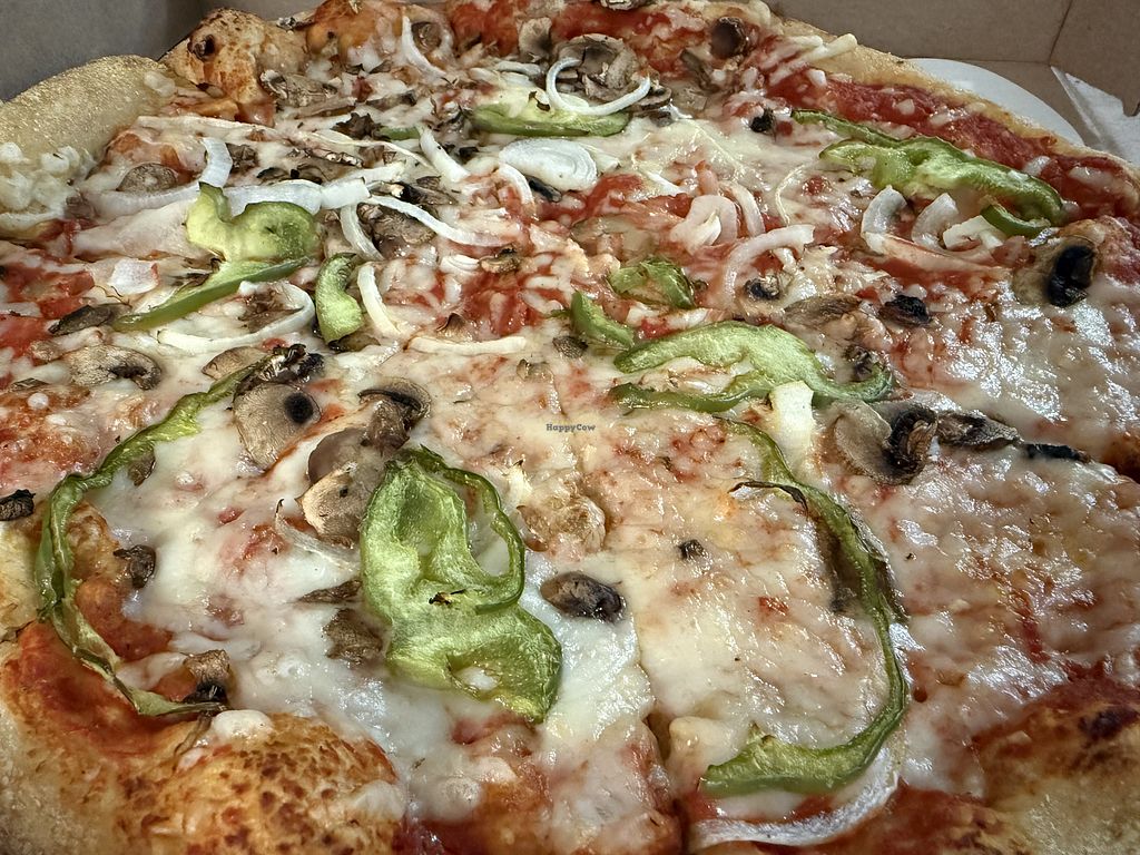 large pizza w follow your heart vegan cheese and mushrooms