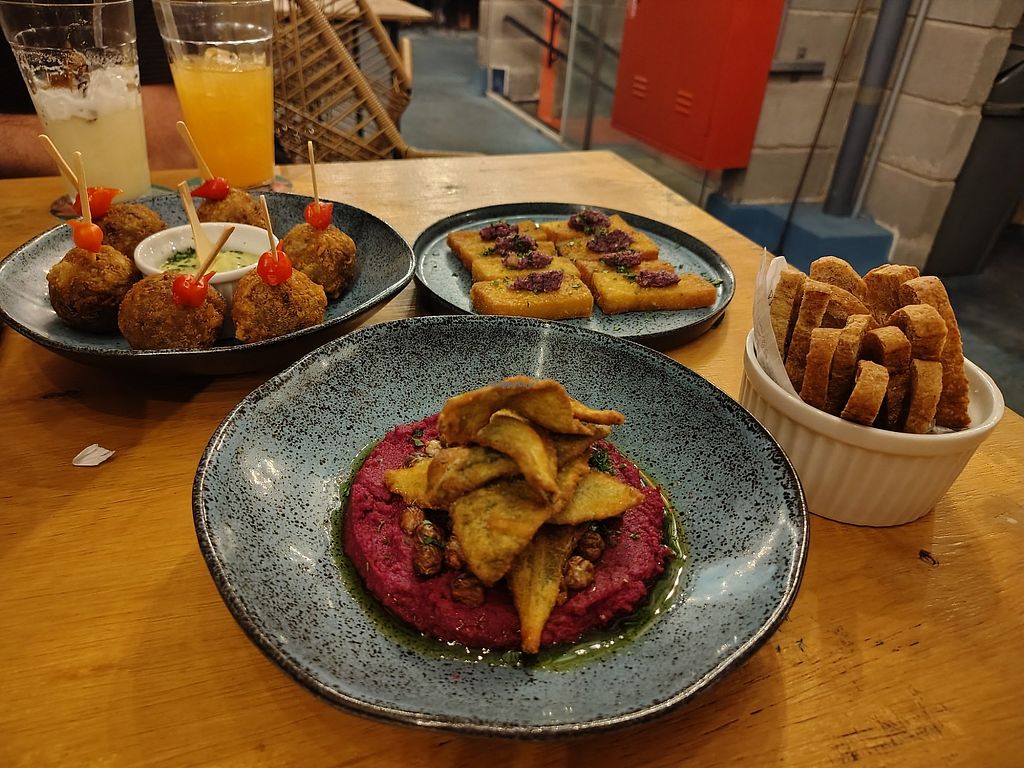 Serves meat, vegan options available. Café and bar offering vegan choices that include mushroom croquettes, fried polenta and vegan peixinho da horta (Portuguese "fish" dish). Open Mon-Thu 4:00pm-11:00pm, Fri-Sat 4:00pm-12:00am. Closed Sun.