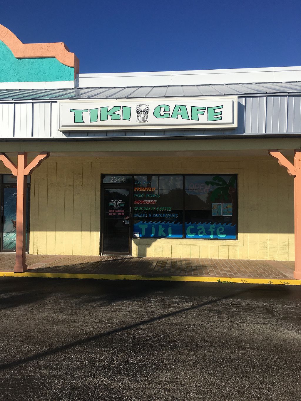 Serves meat, vegan options available. Tiki Cafe close to the beach, has vegan breakfasts, smoothies and build your own poke bowls and salads. Open Mon 8:00am-3:00pm, 5:00pm-8:00pm, Wed-Sun 8:00am-3:00pm, 5:00pm-8:00pm.