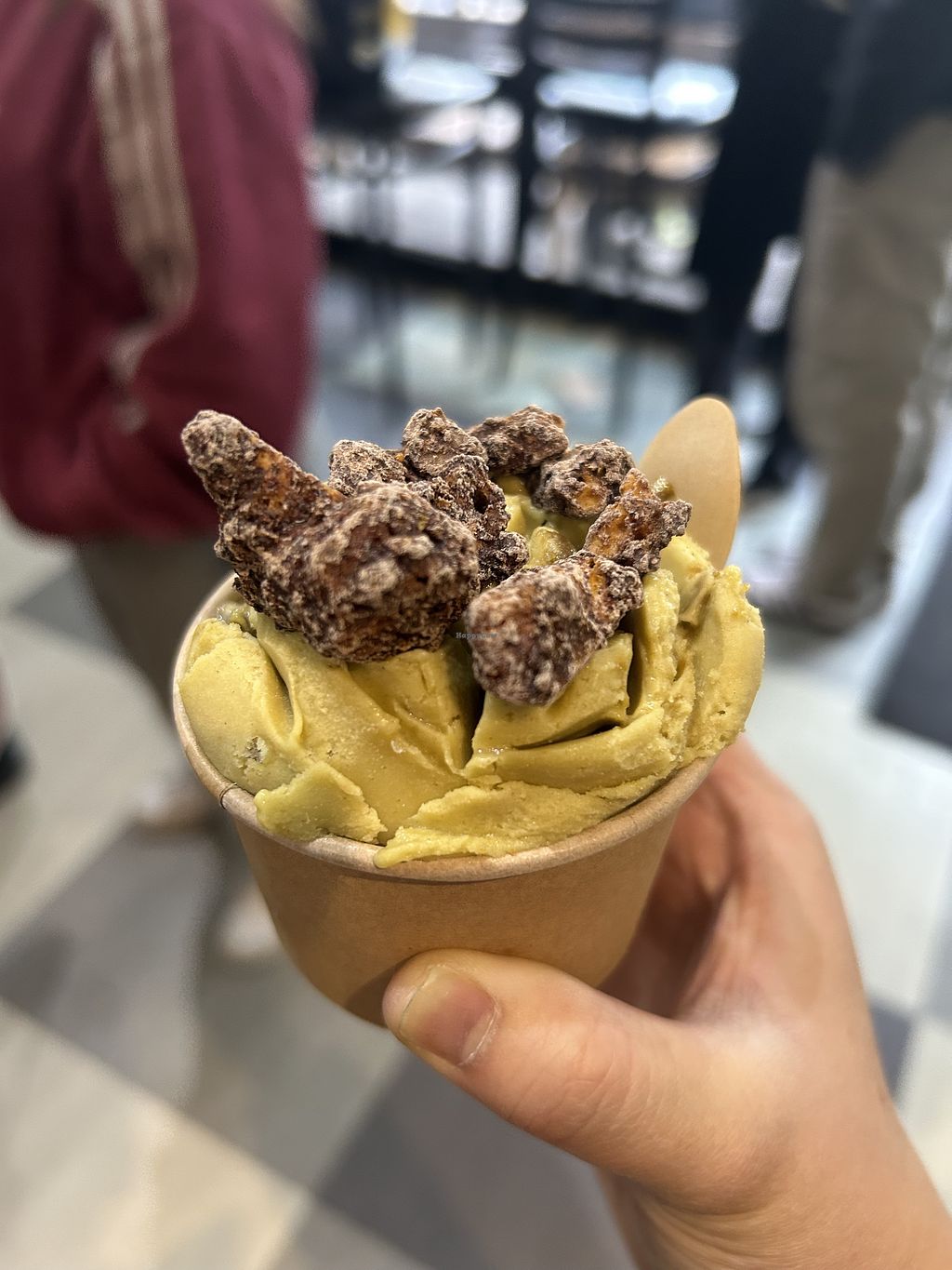 kids scoop ($4.75) of pistachio ice cream with honeycomb topping (+$1)…