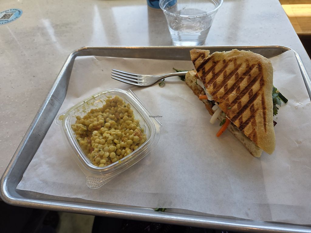 Read moreI ordered the hippie sandwich veganized (sub ciabatta bun and remove cheese). And my partner had the bahn mi. We also had a side of curried couscous. It was all very excellent and very flavorful! My partner later discovered that there's another one near his work and is excited about that!