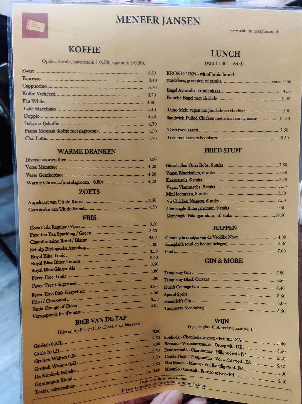 They always have a vegan lunch option and for snacks you can have the vegan bitterballen, vlammetjes or loempia's.