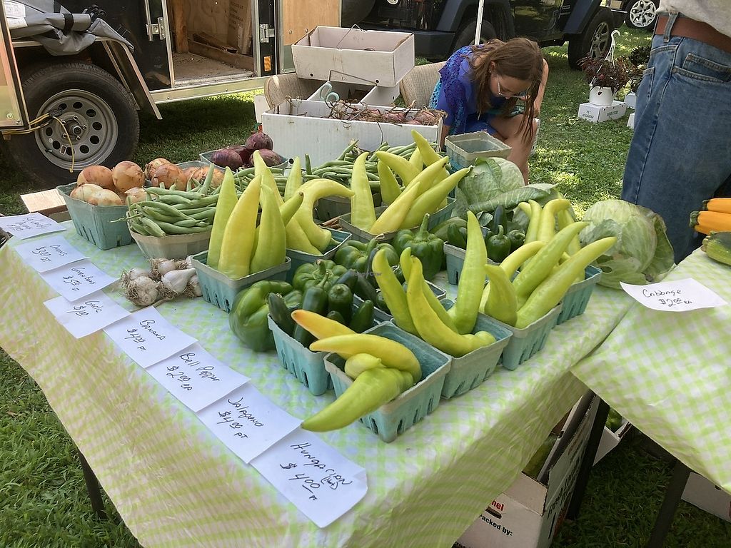 Note: we arrived at 1:55 PM for a 2 PM farmers market official start time. One space was left in the parking lot, and we grabbed it. When we left, a half hour later, people were circling the parking lot looking for spaces. Recommendation? Go early!