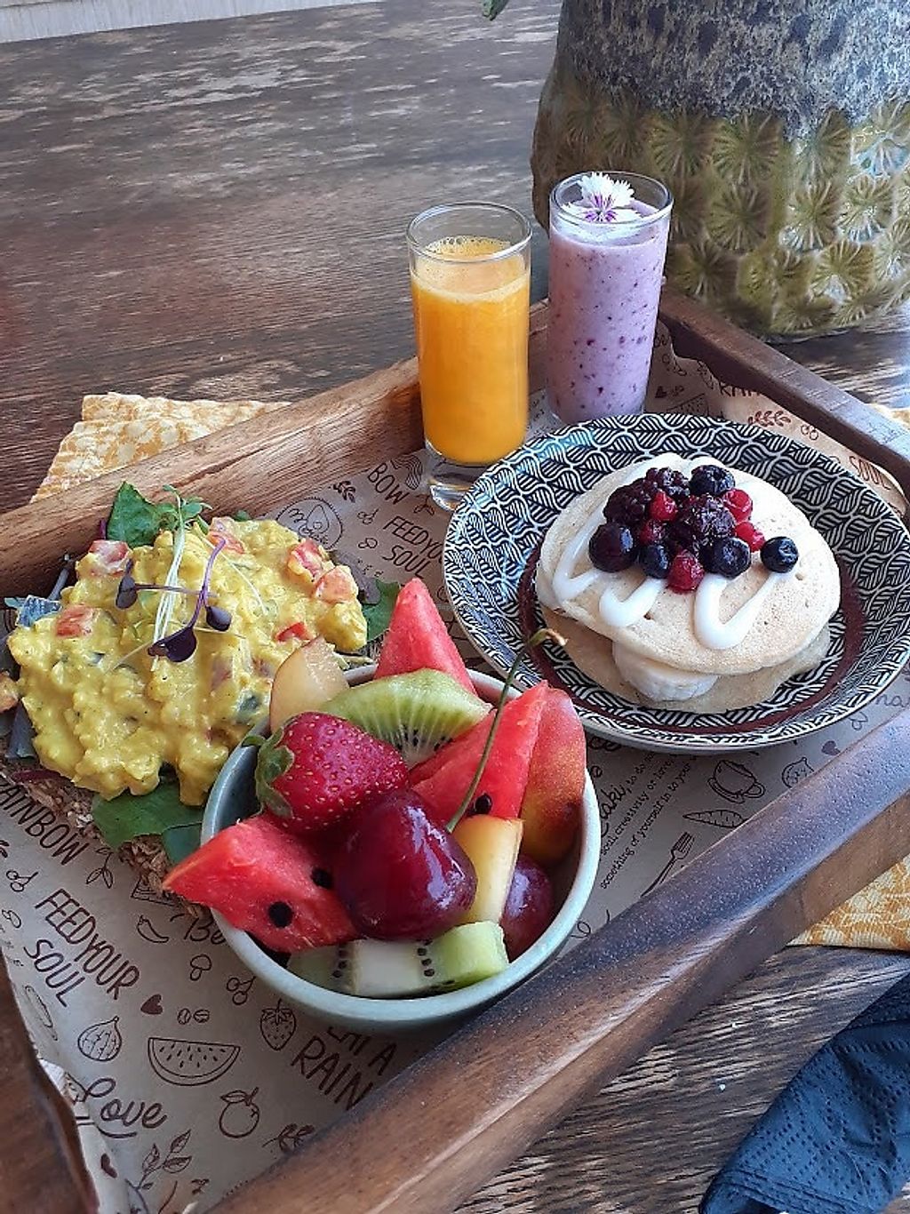Brunch board: smashed avo or 'egg' mayo chickpeas on toast, a mini sta…