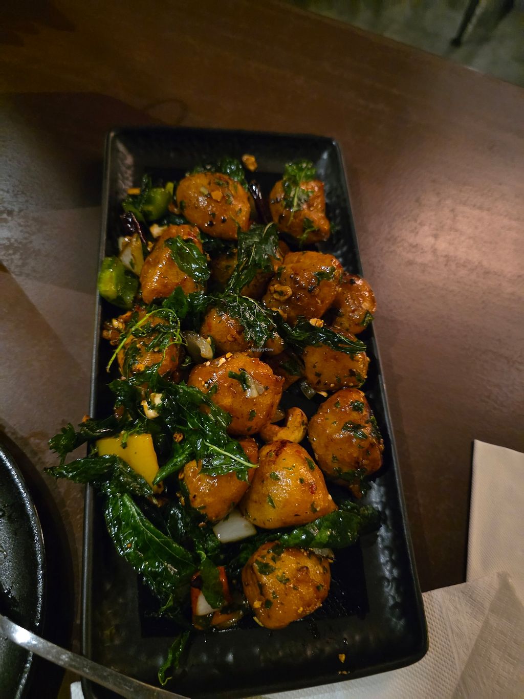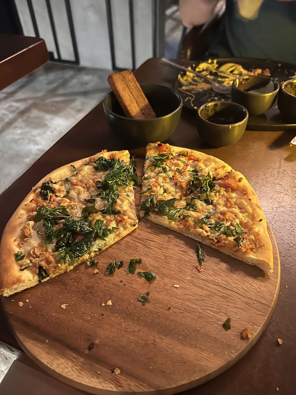 Fully vegan restaurant that does curry’s, burgers, pizza etc. Vast menu, we were spoilt for choice. Despite there being a lack of staff the service was excellent as was the meal. They also have a happy hour buy one get one free on selected beer and cocktails