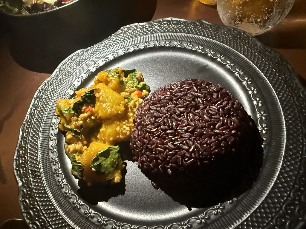 We're here in Bangkok for a few days and checked the Happy Cow app and figured to try this place. Easy to find location. Nice vibe. Great food. We both got the Mercy Salad with a delicious tofu dressing. My husband then got Stir-Fried Pumpkin and Homemade Tofu. We were very pleased with are delicious vegan food!