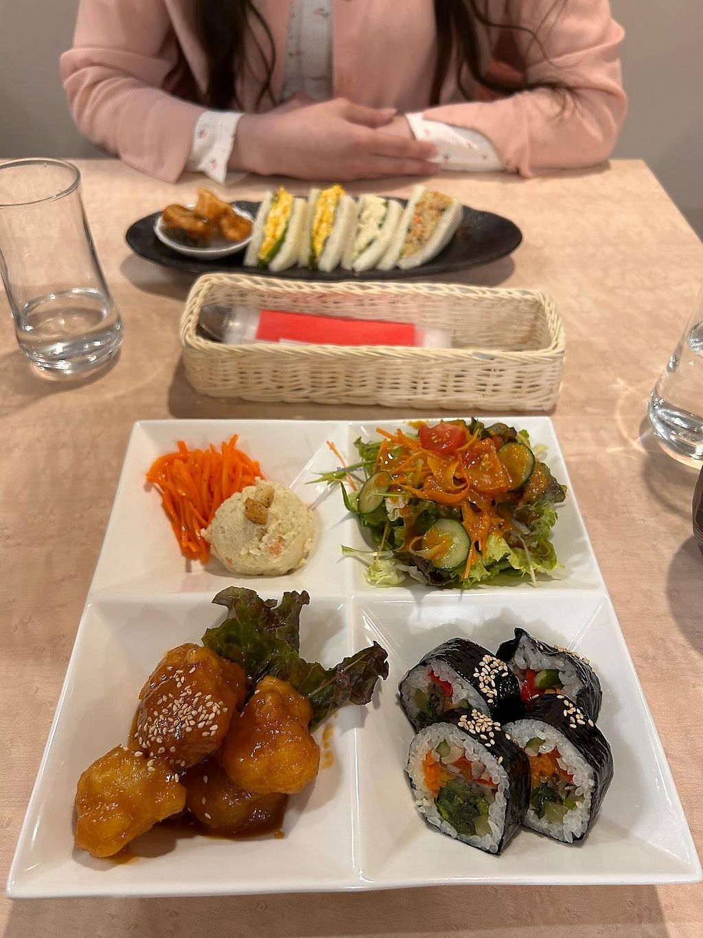 Great vegan lunch consisting of many great Asian dishes. We had a kimbap, cauliflower and a nice sandwich set as well as awesome sweets. Recommended!