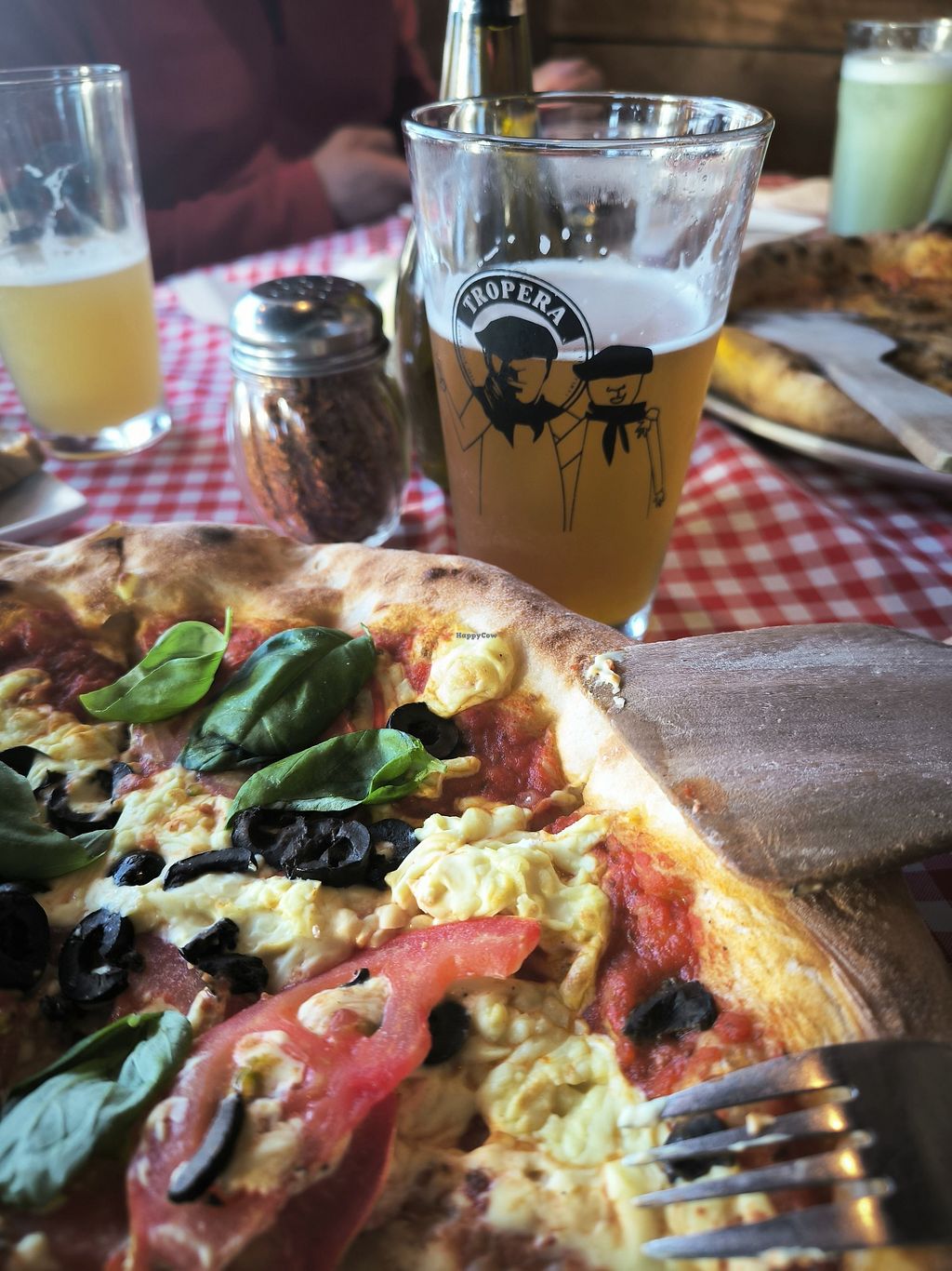 The vegan pizza options weren't many but the cheese was delicious. The beers are a great option!