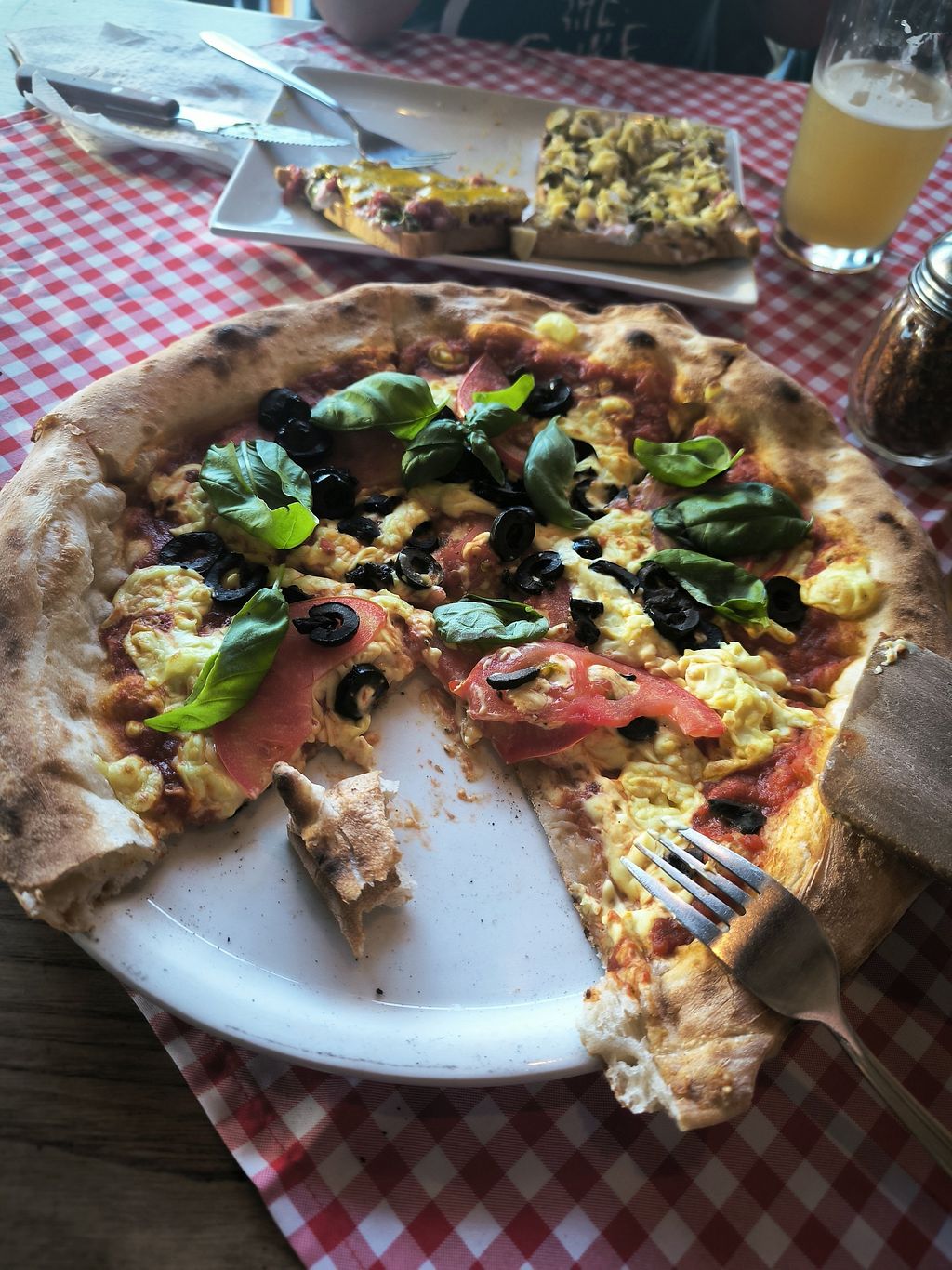 So happy we found this place. Located on a jetty over the lake, most seats have an amazing view and the atmosphere is very lively and warm. I ordered a vegan caprese pizza with almond-based cheese and it was simply delicious. The crust, tomato sauce, and freshness of ingredients was amazing. Great beer as well for those who partake!