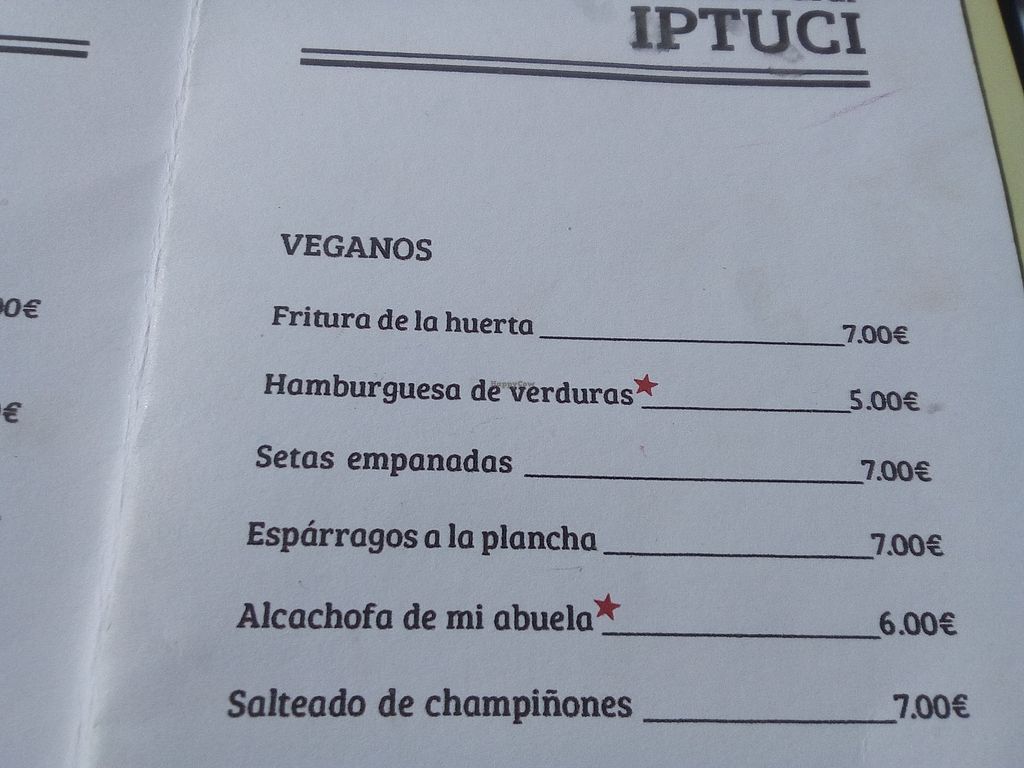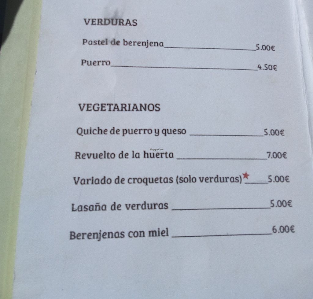 Serves meat, vegan options available. Offers local Spanish food but with vegetarian and vegan dishes on the menu. Has indoor seating and outside terrace.