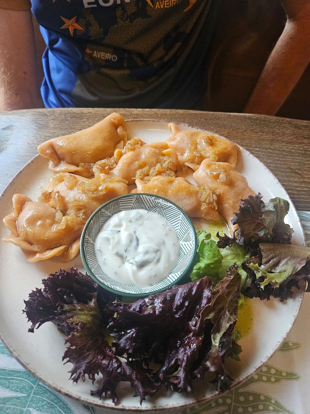 One set of vegan dishes: soup, 2 main courses, cake. I tried Pyzy. Big portion. Innovative: really interesting combination of flavours. Watch out for a dressing, it's spicy. It's a bit expensive, but seems like it's normal price in this city.