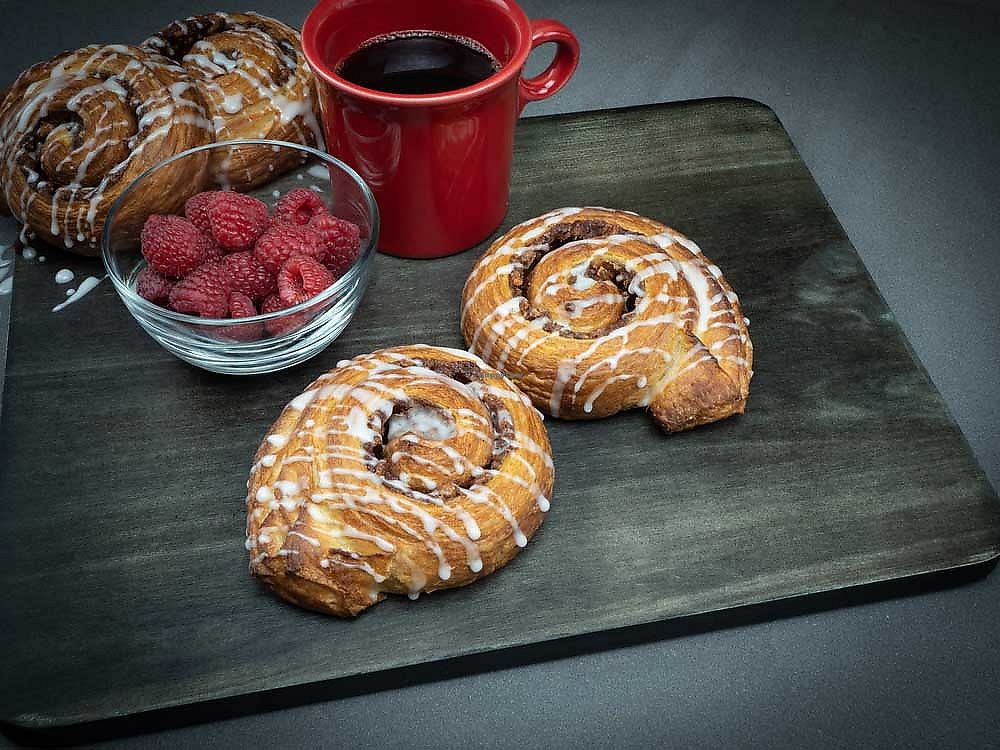 Sugar, cinnamon, pecans and orange extract turn our vegan croissant in…