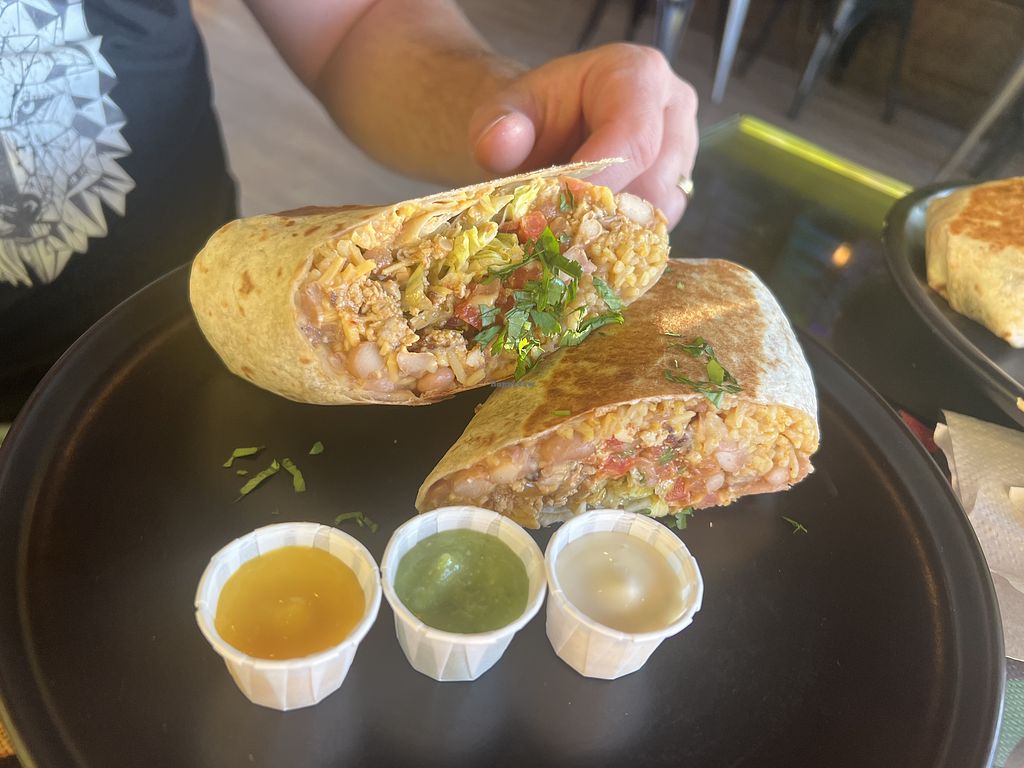 Serves meat, vegan options available. Mexican restaurant with vegan options, including dishes with oyster mushrooms, crispy cauliflower, and Portobello. Also serving juices. Open Mon 11:00am-8:00pm, Tue-Sat 11:00am-9:00pm, Sun 11:00am-7:00pm.