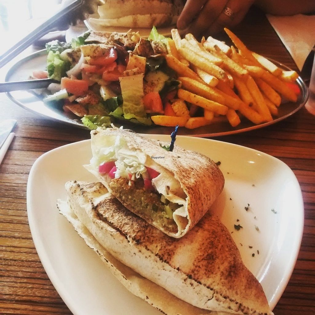 The waitress we had was extremely friendly, welcoming and wasn't completely knowledgeable on vegan fare but very accommodating and asked the kitchen no questions asked. Hubby got their falafal which he loves and since I'm not huge for many of those spices I just got their salad and french fries. Seriously it's worth it just for the fries, they make the best ever!