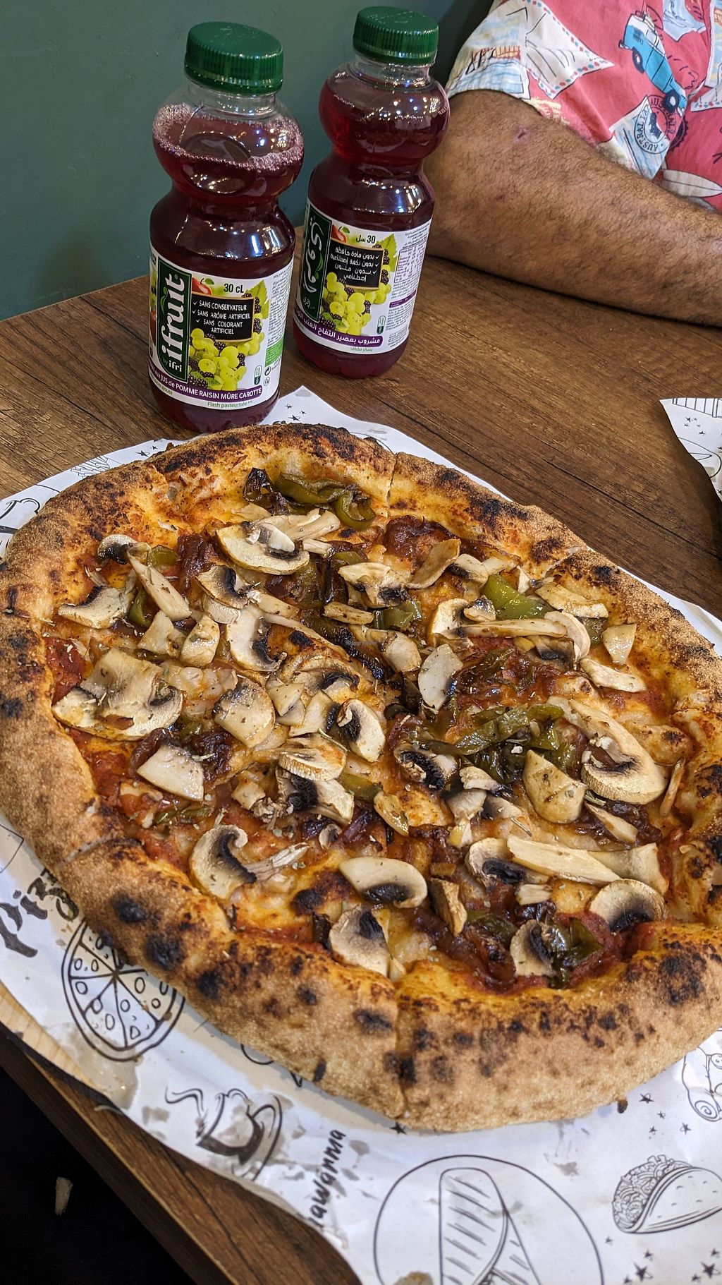 Finding fresh and delicious food in Algeria hasn’t been super easy as a vegan but I’ve been to Mezzaluna multiple times now because I absolutely love the staff and the food is so good! They are happy to make me a vegan pizza with fresh mushrooms and no cheese. Their crust and sauce is so good and having FRESH mushrooms makes it so perfect! I also love their french fries and the service is always good and fast!