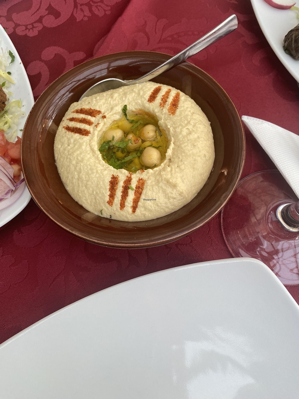 Serves meat, vegan options available. Lebanese restaurant which prides itself with many vegetable organic dishes, some of which are vegan and others that could possible be made vegan upon request. Open Tue-Fri 13:00-16:30, 19:00-23:00, Sat-Sun 13:00-23:00. Closed Mon.