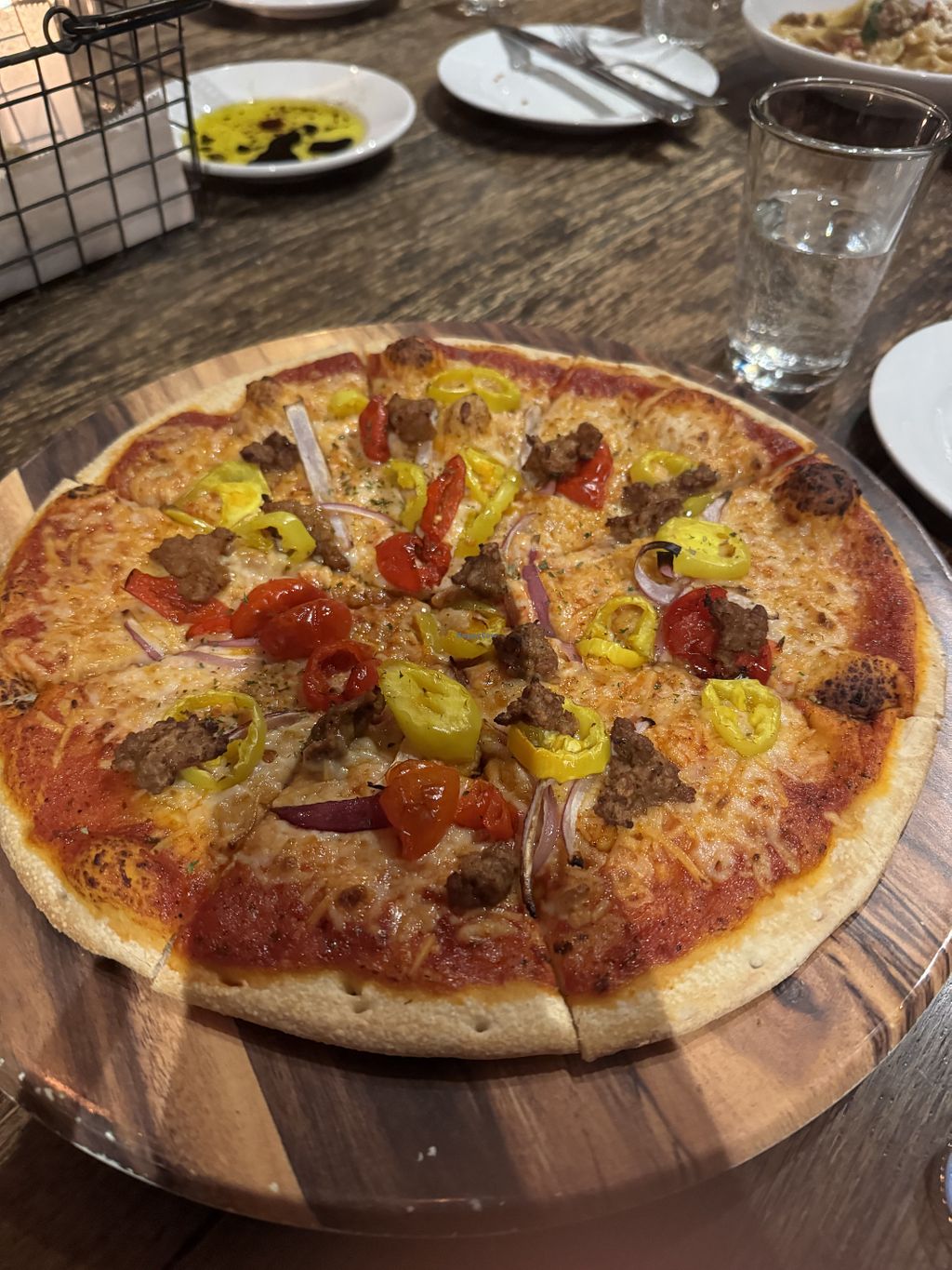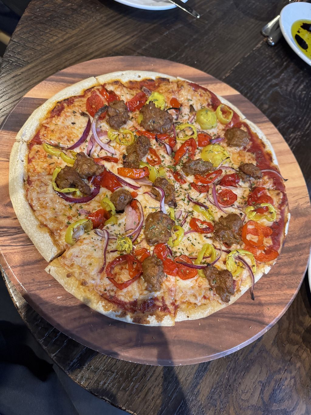 Vegan sausage & pepper pizza
