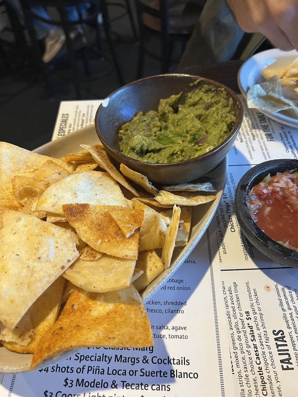 Complimentary chips with three types of salsas
