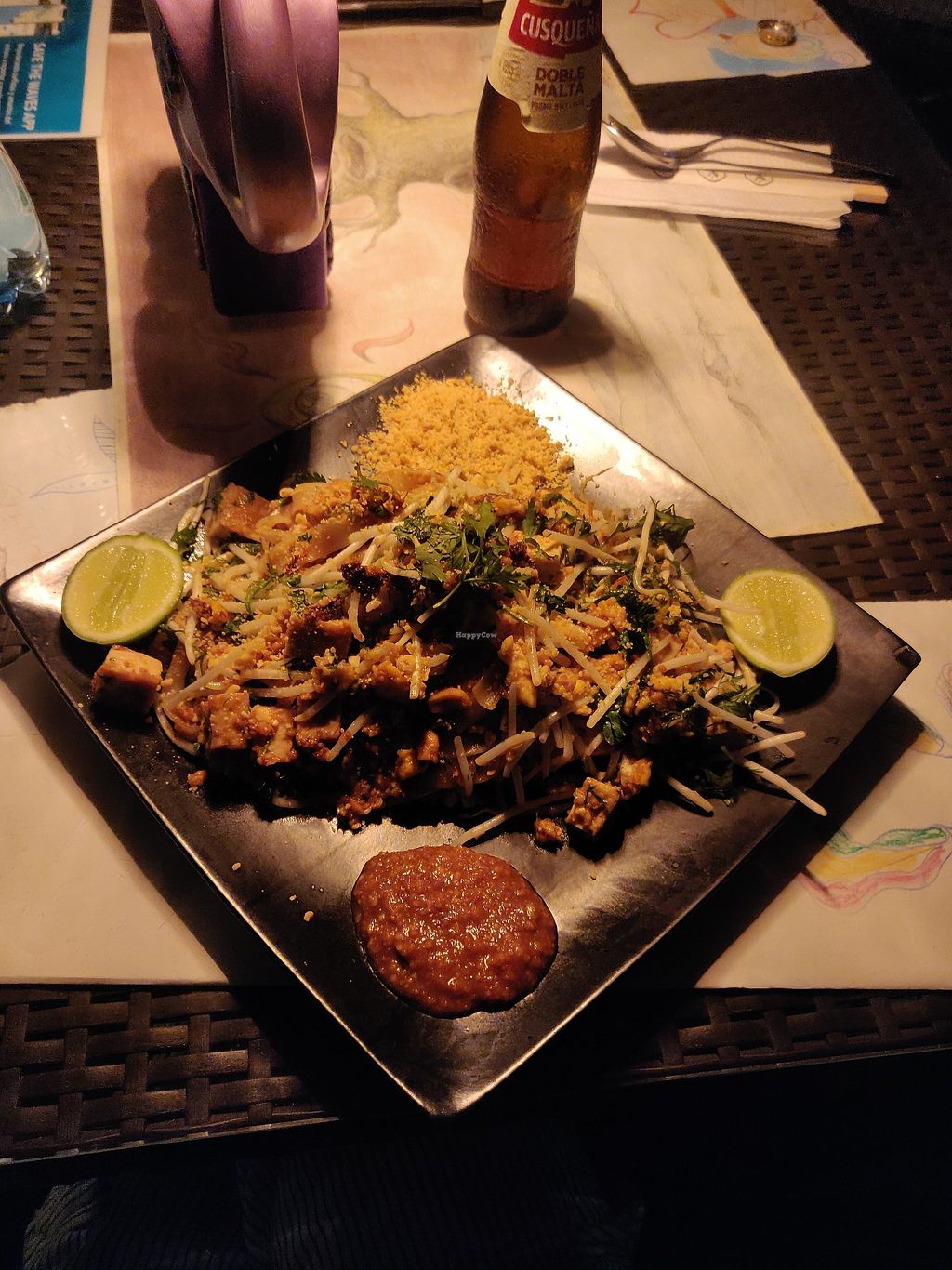Great pad Thai, vegetarian option offered without asking. We went on a Monday evening, and they had a reduced menu of Pad Thai only, and when our friends arrived a bit later, they said they didn’t have anything left. Took about 45 minutes for food to arrive even though there were literally 5 other people there (3 had already been served), but portions were massive and the food was really good. Bit on the pricey side for eating out in Huanchaco at 42 soles a portion, which you don’t know until you ask a server!