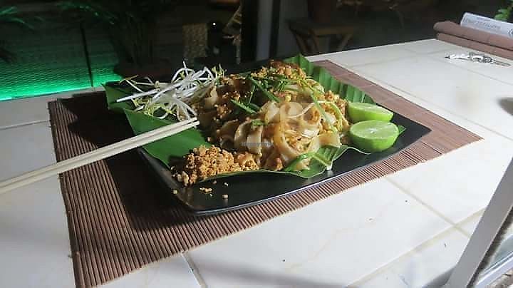 Read moreThere are not that many places around serving vegan food, so it was great to find this place which has exceptional food. They only have two options on their menu - a pad thai and a curry (possible in red or green). We tried the pad thai and it tasted amazing! Everything was really fresh and a big portion as well. After asking for vegan options, we could just swap out the meat and egg for some fried tofu. The restaurant is located on the rooftop of a building close to the seafront and you can see the ocean from the table.